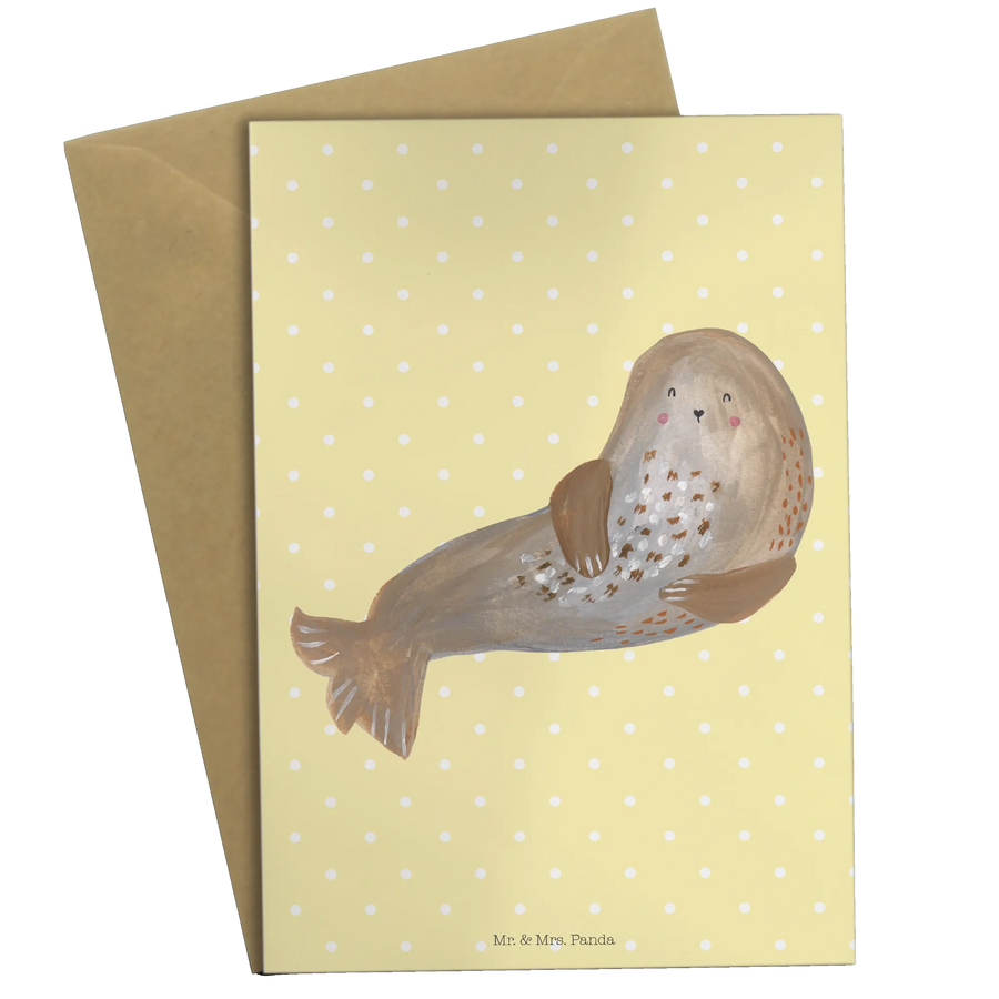 Grußkarte Robbe Lachen - ohne Spruch - Gelb Pastell