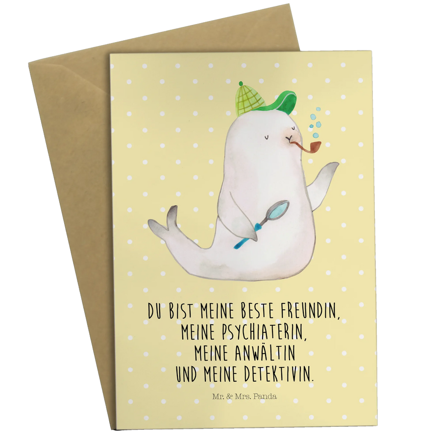 Grußkarte Robbe Sherlock - mit Spruch - Gelb Pastell