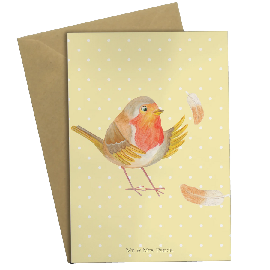 Grußkarte Rotkehlchen Federn - ohne Spruch - Gelb Pastell