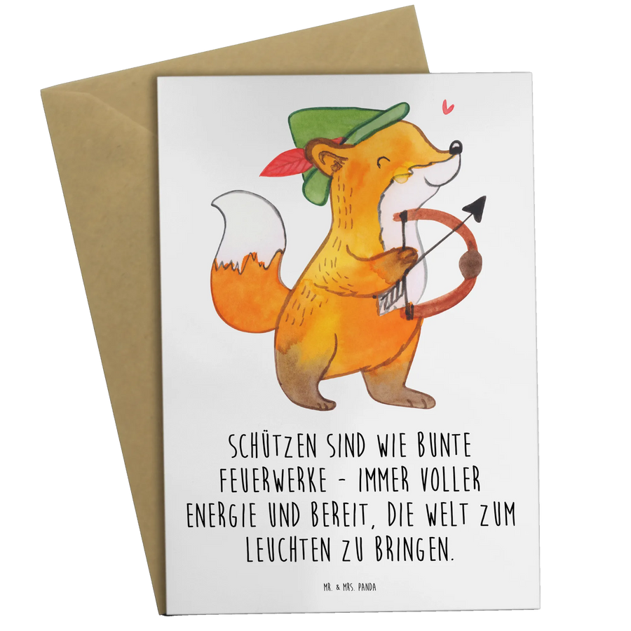 Entdecke die zauberhafte Grußkarte mit dem Motiv "Schütze Astrologie" von Mr. & Mrs. Panda! Diese wunderschöne und einzigartige Grußkarte ist perfekt geeignet, um besondere Grüße oder Glückwünsche für all die feierlichen Anlässe zu überbringen. Die Karte hat die Maße von 148 mm x 105 mm und besteht aus hochwertigem 300 Gramm Karton, wodurch sie sich angenehm anfühlt und edel aussieht. Besonderes Highlight ist die hochglänzend veredelte Vorderseite mit dem charmanten, handgezeichneten Schützen-Motiv!