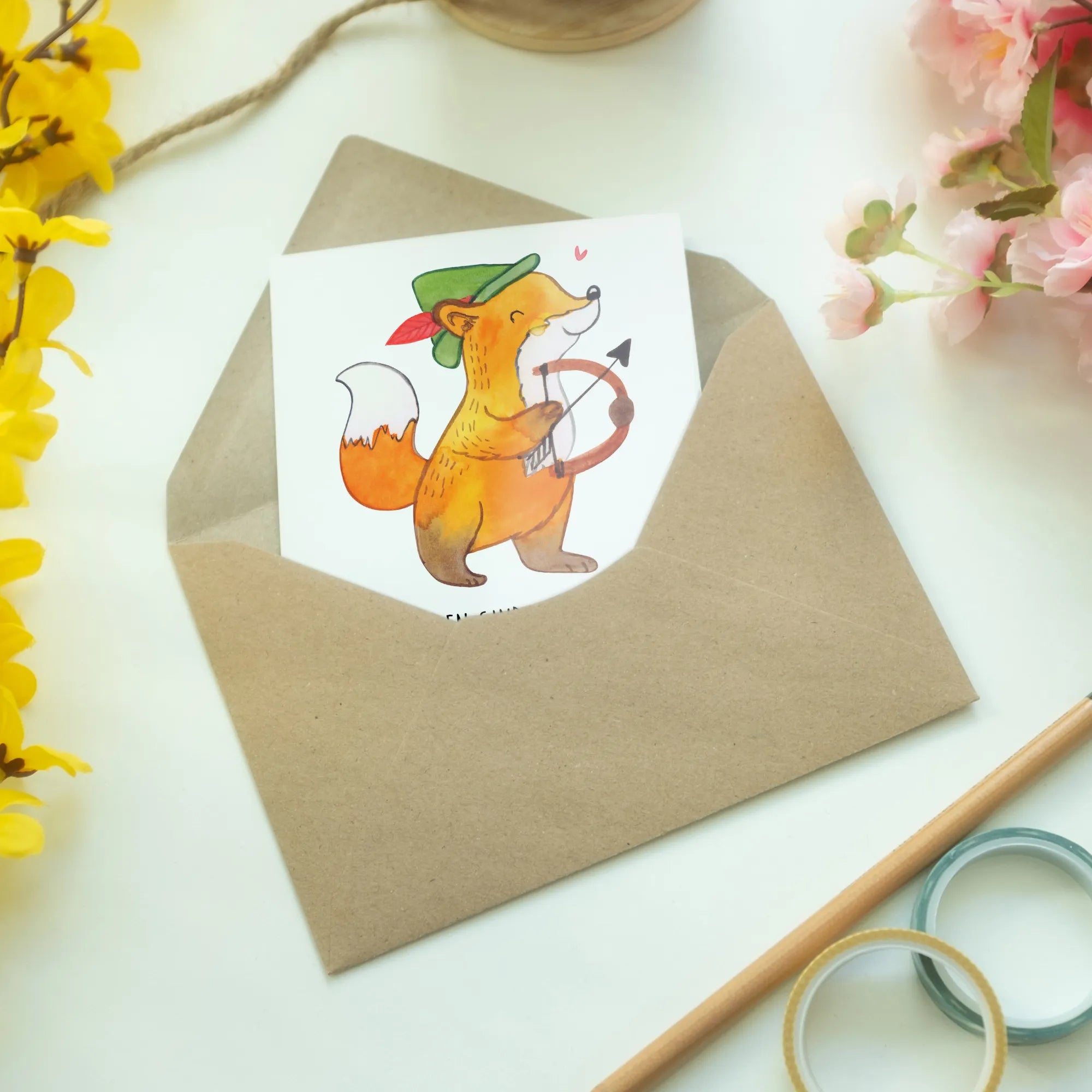 Auf der Vorderseite der Karte prangt unser niedlicher kleiner Fuchs, der in einem bunten und fröhlichen Design das Sternzeichen Schütze verkörpert. Der Fuchs ist nicht nur liebevoll gestaltet, sondern bringt auch mit seinem verschmitzten Lächeln Freude und Wärme in jeden Raum. Er hält mit einem Bogen seinen Pfeil bereit, was ihm eine verspielte Ausstrahlung verleiht. Perfekt, um das Temperament und die Energie der Schützen zum Leben zu erwecken!
