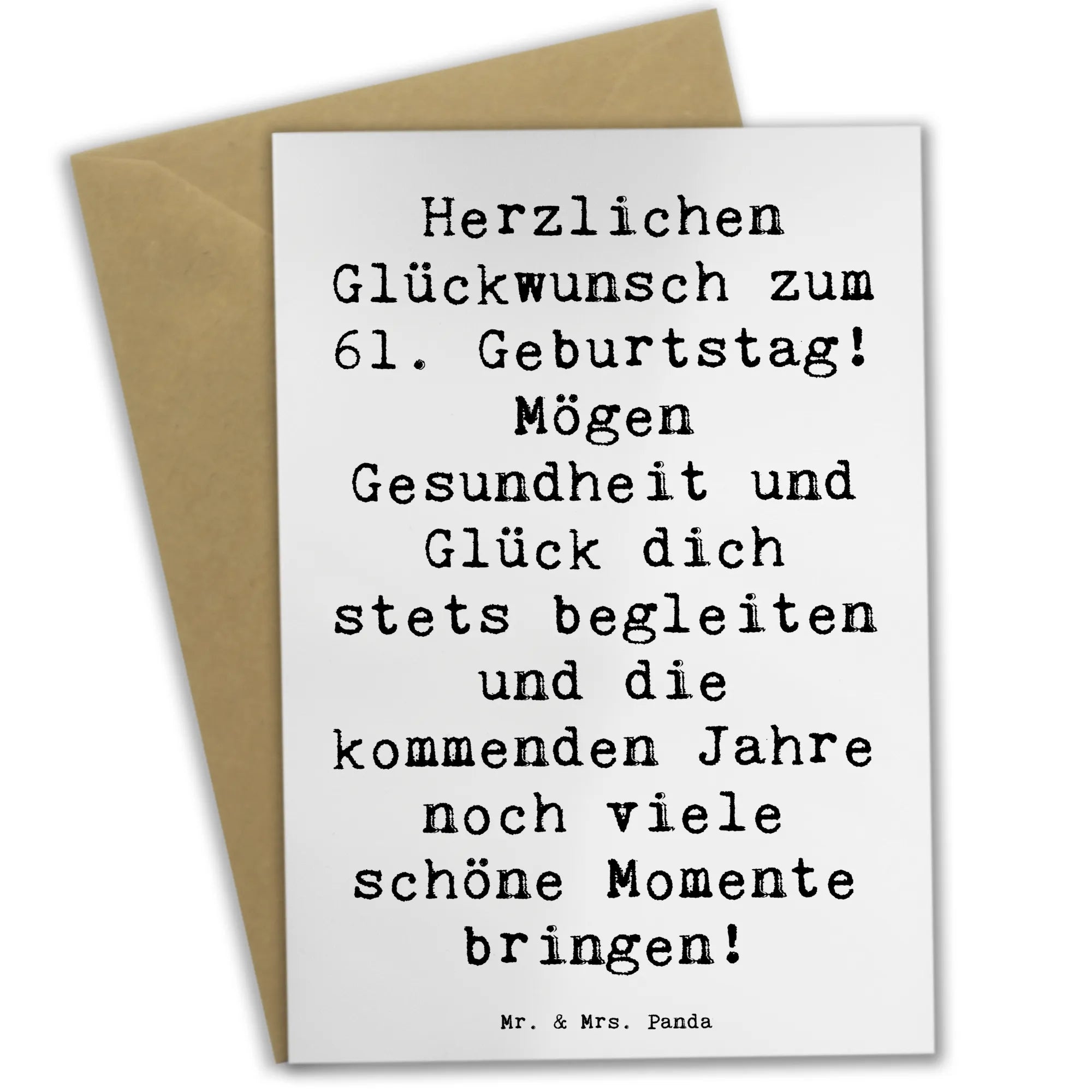 Die Karte ist mit einem herzlichen Spruch bedruckt: 'Herzlichen Glückwunsch zum 61. Geburtstag! Mögen Gesundheit und Glück dich stets begleiten und die kommenden Jahre noch viele schöne Momente bringen!', der das Herz erwärmt und jedem Geburtstag einen persönlichen Touch verleiht.
