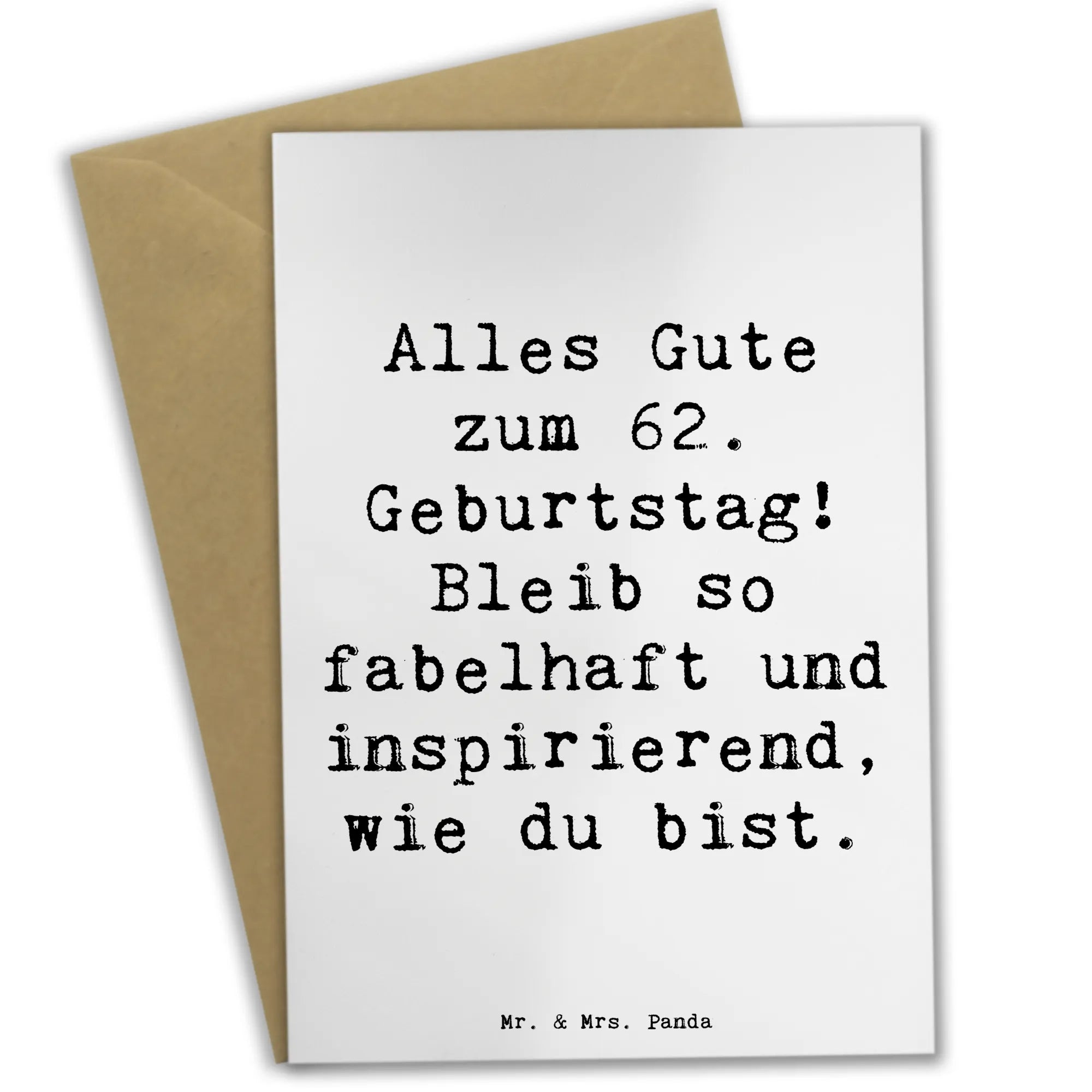 Die Grußkarte zum 62. Geburtstag von Mr. & Mrs. Panda ist das perfekte Geschenk für alle, die einen besonderen Menschen in ihrem Leben feiern möchten. Mit ihrem liebevollen Spruch "Alles Gute zum 62. Geburtstag! Bleib so fabelhaft und inspirierend, wie du bist." bringt diese Karte Freude und gute Stimmung in jeden Raum.