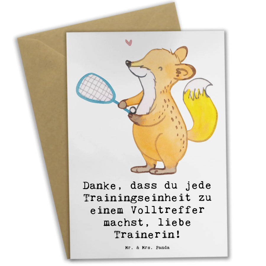 Die beiligende hochwertige Verpackung rundet das Gesamtbild ab und sorgt dafür, dass deine Grußkarte stilecht überreicht werden kann. Lass deine Trainerin wissen, wie wichtig sie ist, mit dieser einzigartigen, handgezeichneten Grußkarte von Mr. & Mrs. Panda!