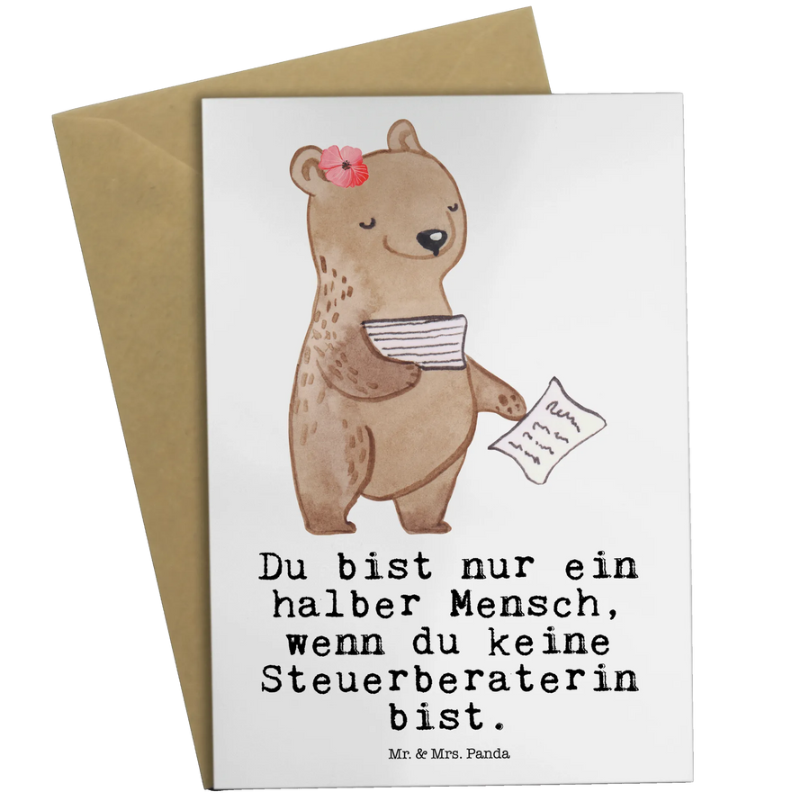 Du suchst nach dem perfekten Geschenk für deine Steuerberaterin oder möchtest einfach mal "Danke" sagen? Dann ist diese wundervolle Grußkarte von Mr. & Mrs. Panda genau das Richtige für dich! Mit ihrem einzigartigen Design, das eine süße, weibliche Bärin mit einem Stapel Unterlagen zeigt, bringt diese Karte nicht nur Freude, sondern auch ein Lächeln auf die Gesichter der Empfänger. Mit dem Spruch 'Du bist nur ein halber Mensch, wenn du keine Steuerberaterin bist.' wird deutlich, dass du die Arbeit und das Engagement deiner Kollegin schätzt.