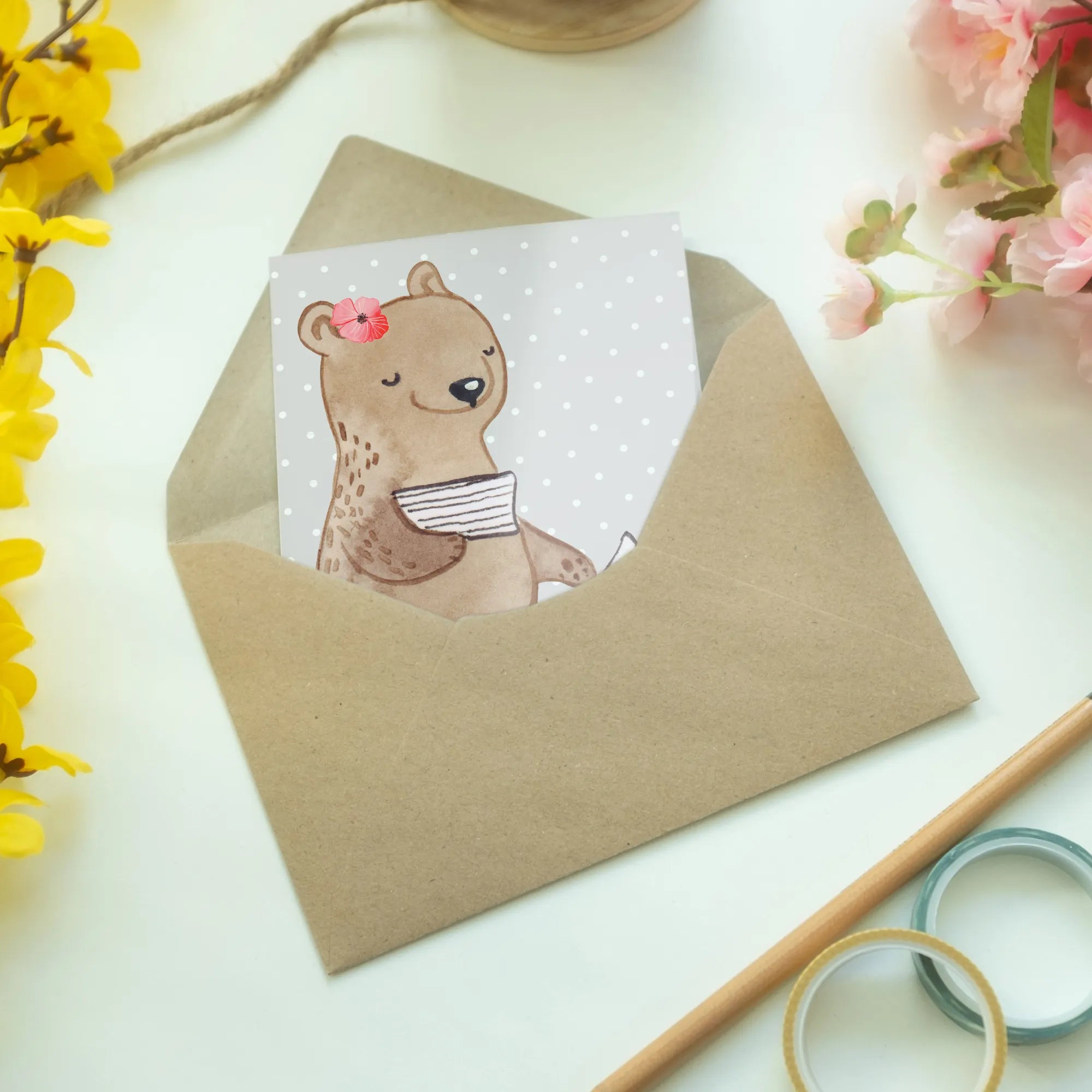 Die Grußkarte gehört zur kreativen Berufe Kollektion von Mr. & Mrs. Panda, die sorgfältig und mit viel Liebe zum Detail gestaltet wurde. Ideal für diverse Anlässe wird sie zu einem ganz besonderen Geschenk - sei es zum Berufsabschied, zum Jubiläum oder einfach um einen lieben Kollegen zu überraschen. Du kannst die Karte auch hervorragenden an deine Mitarbeiter verschenken, um ihnen zu zeigen, wie sehr du ihre Arbeit wertschätzt. Die matte Innenseite ermöglicht es dir, eine persönliche Botschaft oder Glückwünsche hinzuzufügen und so die Karte individuell zu gestalten.