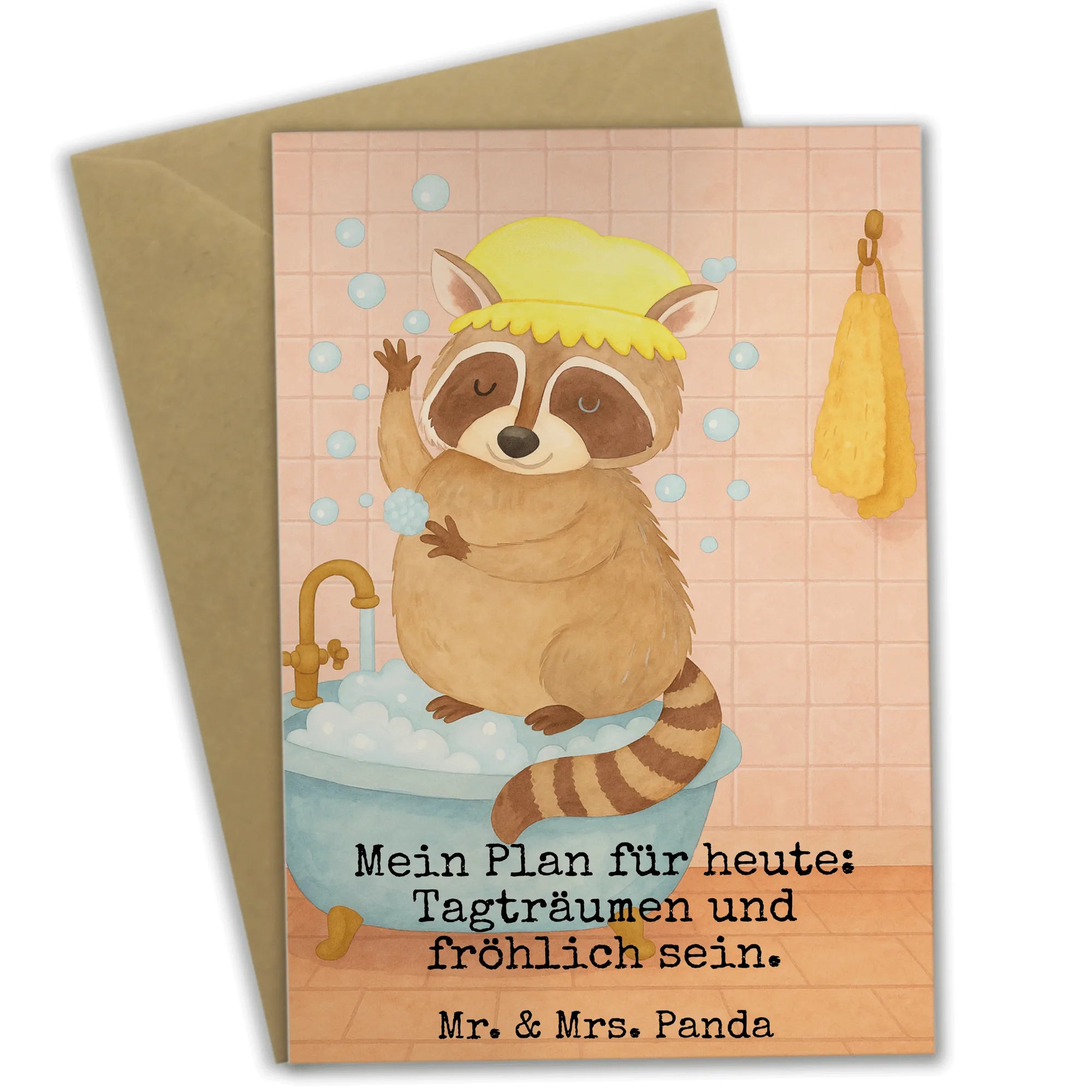 Grußkarte Waschbär Design Grußkarte, Klappkarte, Einladungskarte, Glückwunschkarte, Hochzeitskarte, Geburtstagskarte, Karte, Ansichtskarten, Tiermotive, Gute Laune, lustige Sprüche, Tiere, Waschbär, Tagträumen, Plan, Fröhlich, waschen, Seifenblasen