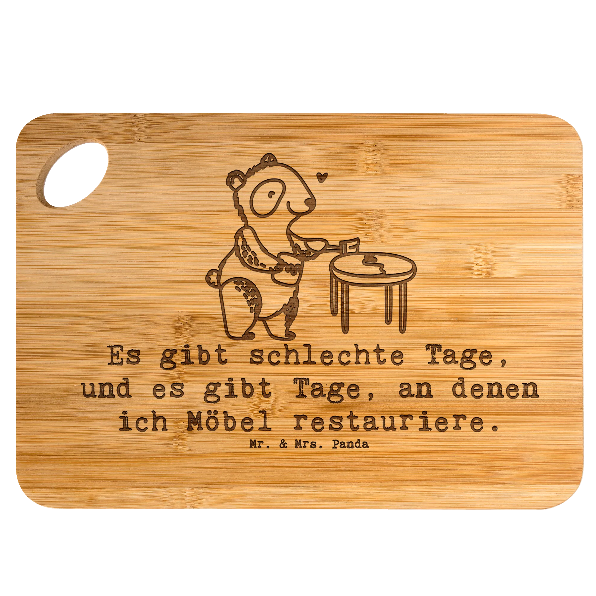 Schneidebrett Panda Möbel restaurieren - mit Spruch
