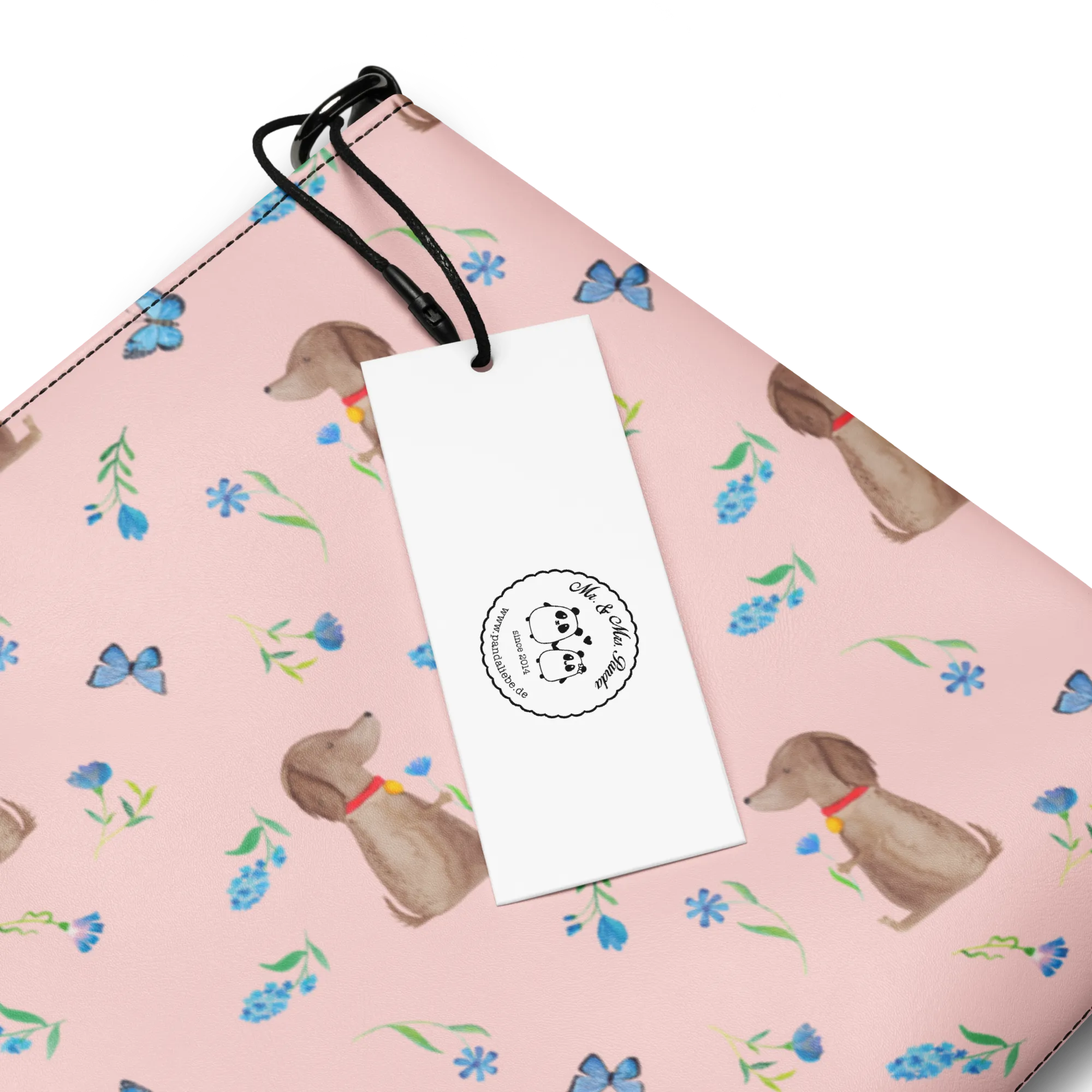 Mr. & Mrs. Panda Handtasche „Hund Blume“ – die perfekte Kombination aus Charme und Alltagstauglichkeit. In zartem Rosa zeigt diese Umhängetasche eine liebevoll gezeichnete Hündin mit einer Blume im Fell aus unserer bezaubernden Hunde Kollektion. Ein Accessoire für Hundebesitzerinnen, das Herz und Stil vereint.