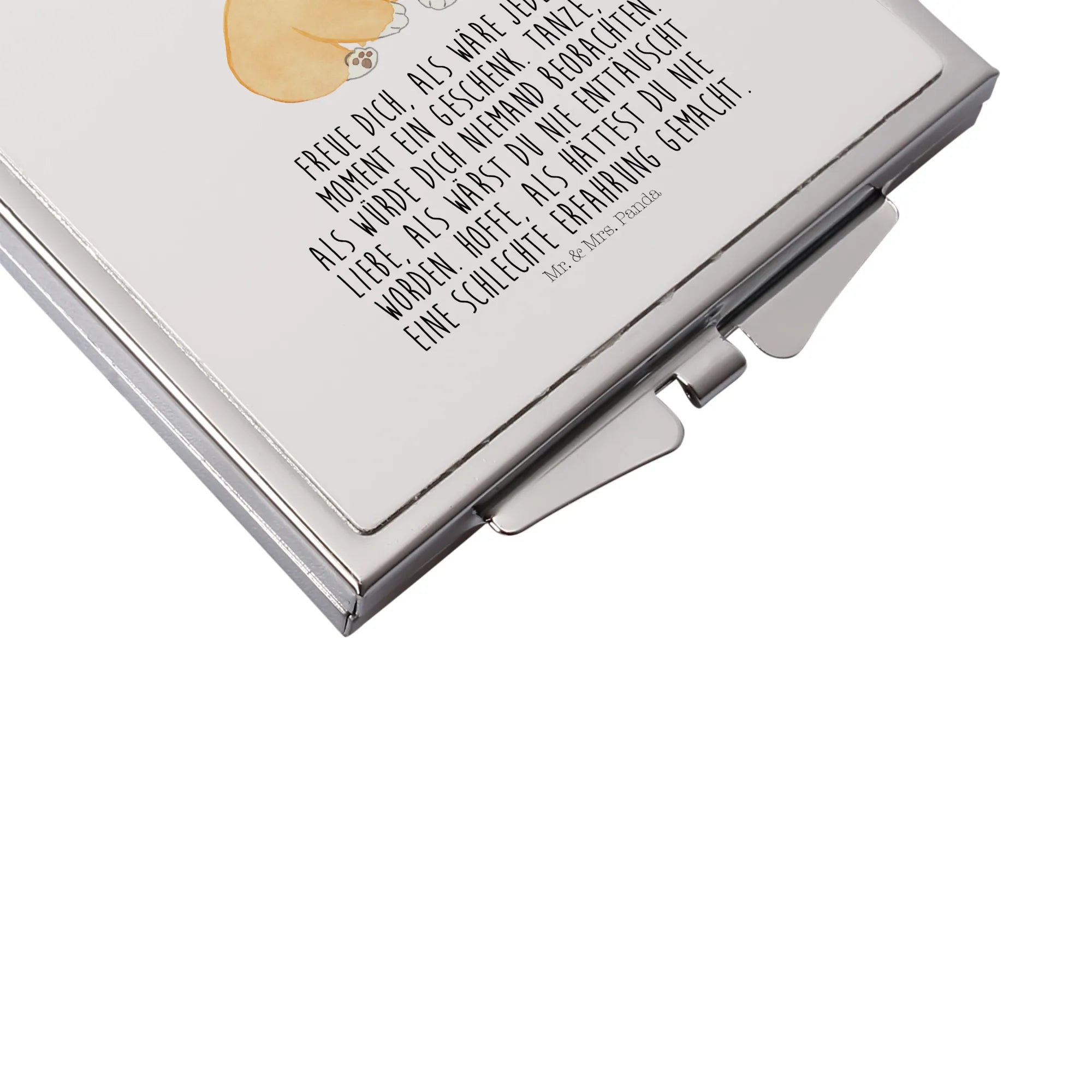 Mit dem quadratischen Handtaschenspiegel von Mr. & Mrs. Panda bist du stets bereit, gut auszusehen! Dieser stilvolle Spiegel ist 60 mm x 60 mm x 8 mm groß, perfekt für jede Handtasche. Aus einer hochwertigen Glasplatte mit Aluminium gefertigt, bietet er nicht nur ein klares Spiegelbild, sondern verleiht dir auch eine Prise Eleganz. Die süßen Motive und Sprüche auf der Frontseite sorgen für gute Laune, egal wo du bist. Der Klappverschluss hält den Spiegel sicher geschlossen und macht ihn zum idealen Reisebegleiter. Um den Spiegel zu pflegen, benötigst du nur ein feuchtes Tuch, um ihn in strahlendem Zustand zu halten. Schenke ihn dir selbst oder überrasche deine Freunde – dieser Handtaschenspiegel ist ein tolles Geschenk für jeden Anlass!