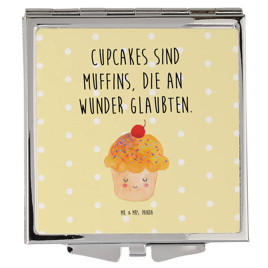 Handtaschenspiegel quadratisch Cupcake - mit Spruch - Gelb Pastell