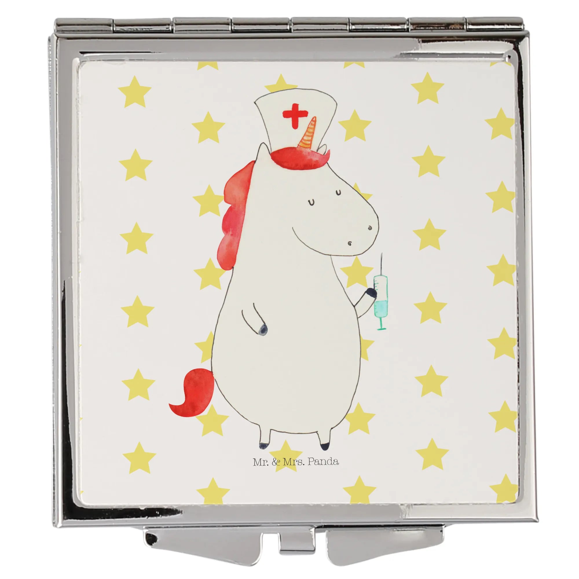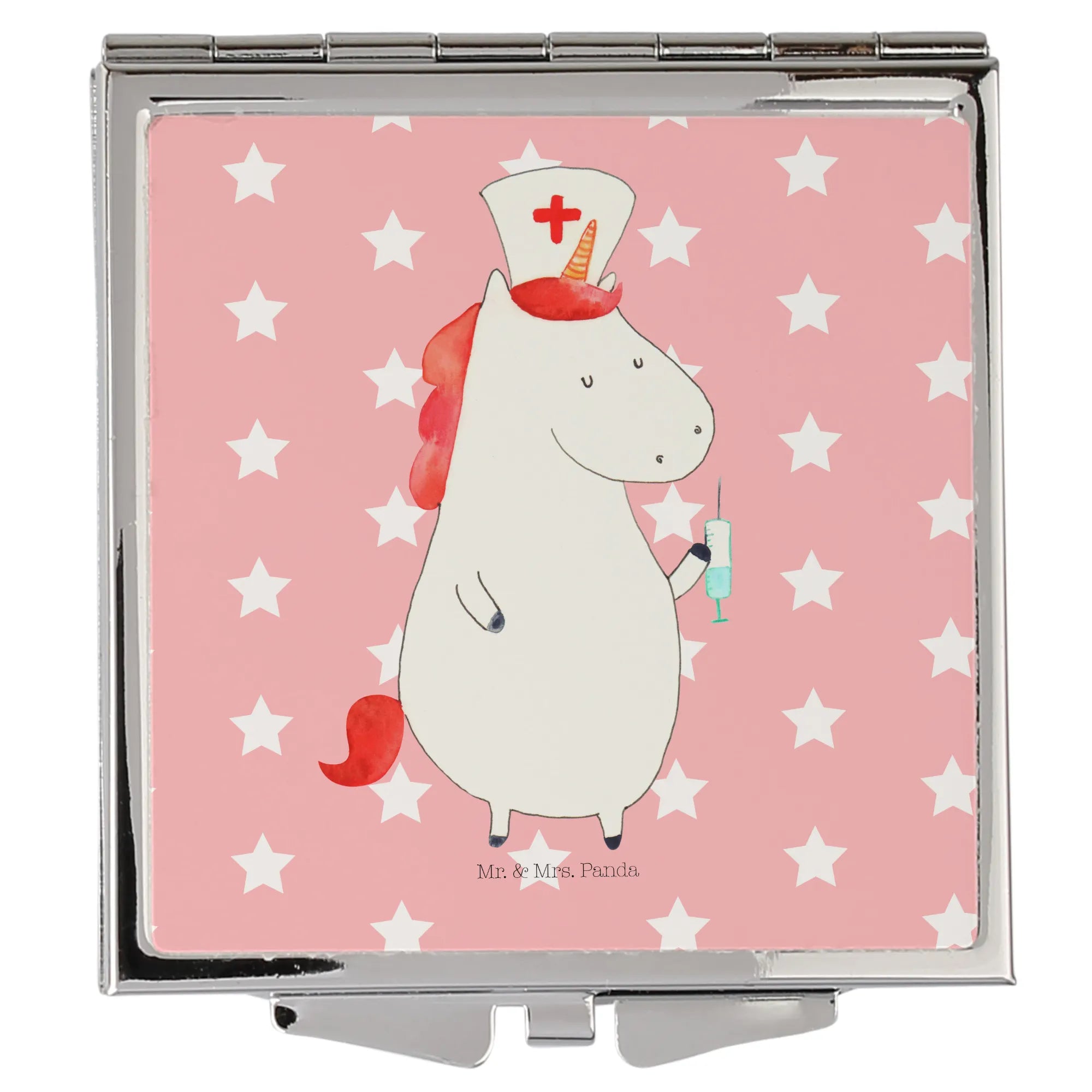 Handtaschenspiegel quadratisch Einhorn Krankenschwester - mit Spruch - Rot Pastell