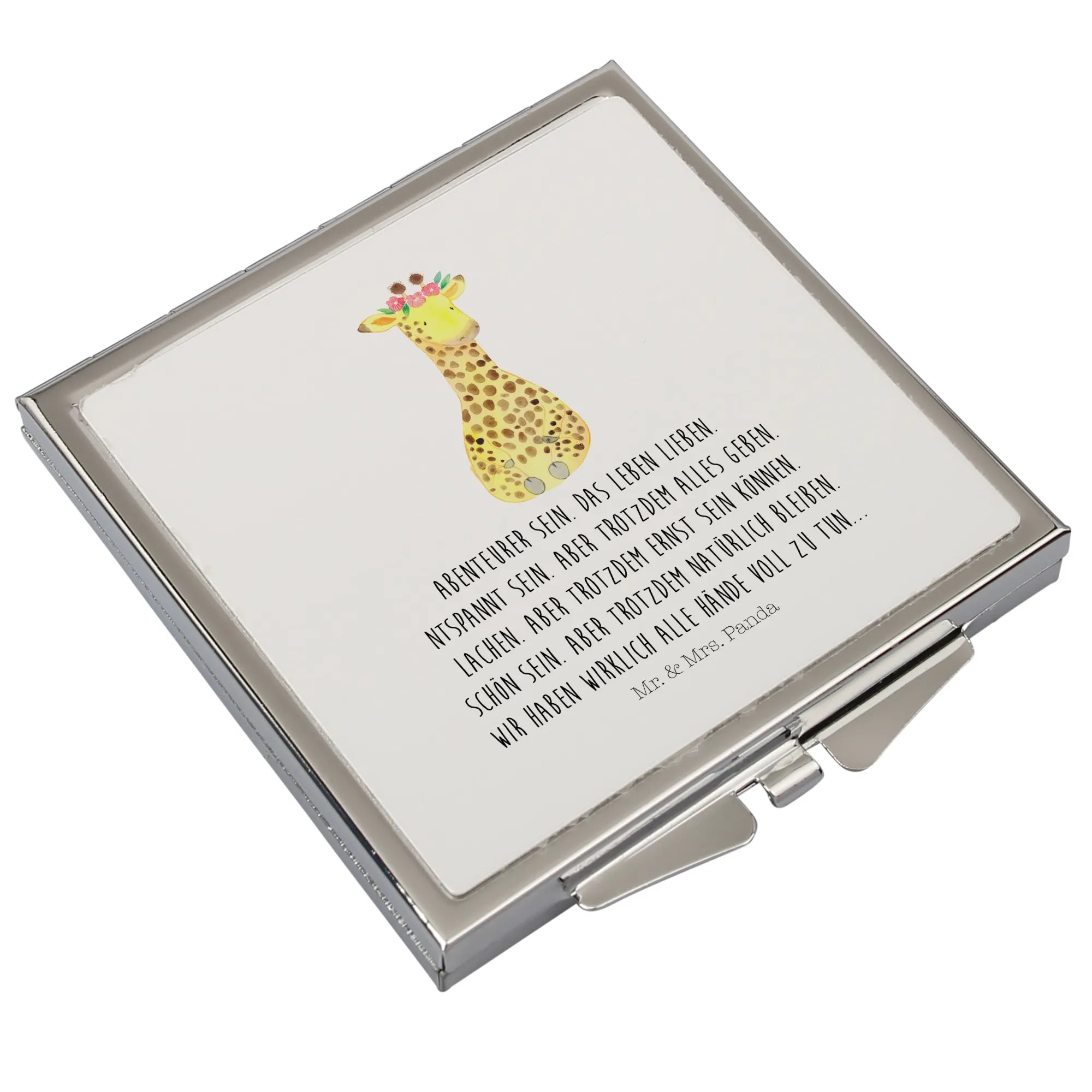 Handtaschenspiegel quadratisch Giraffe Blumenkranz - mit Spruch