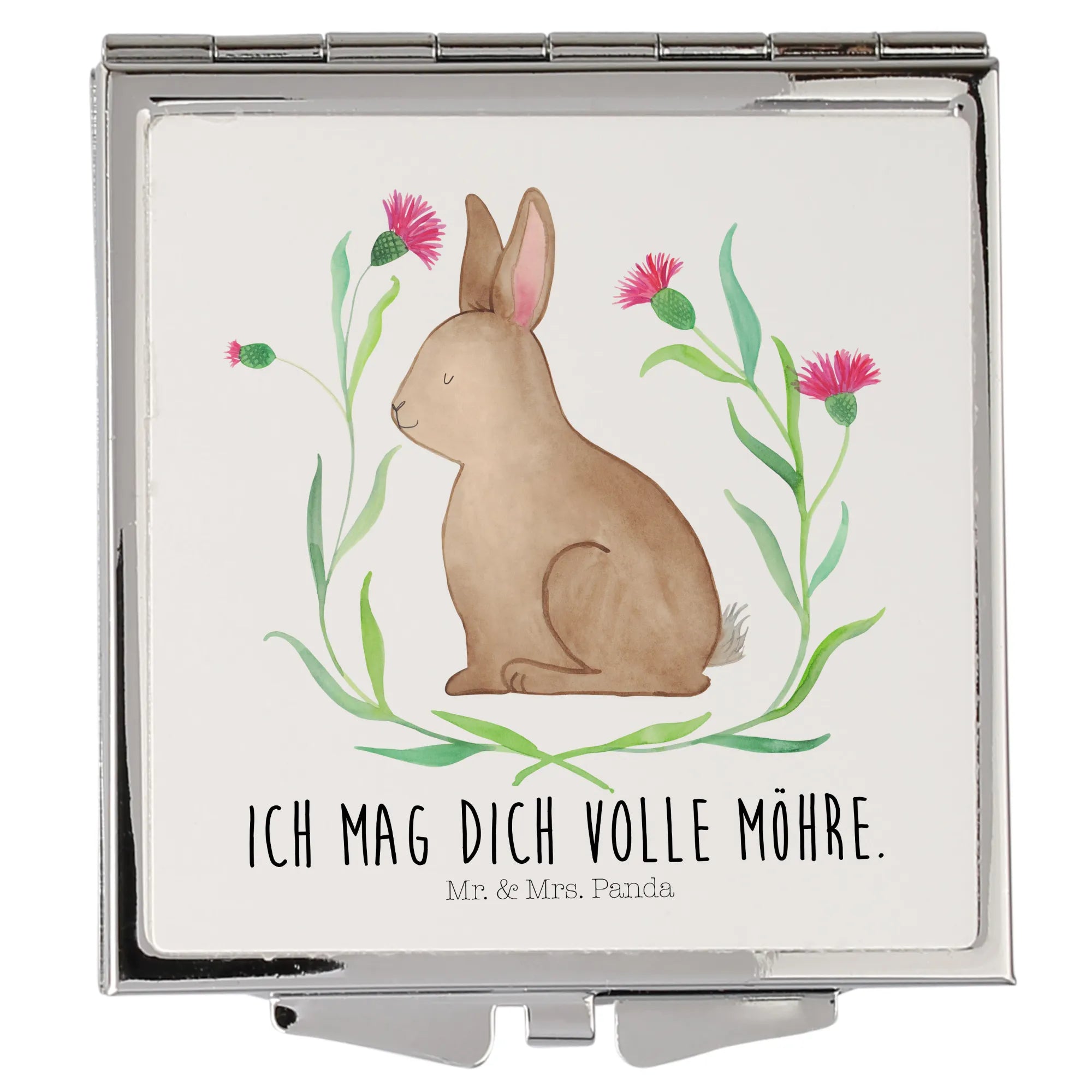 Handtaschenspiegel quadratisch Hase Sitzen - mit Spruch