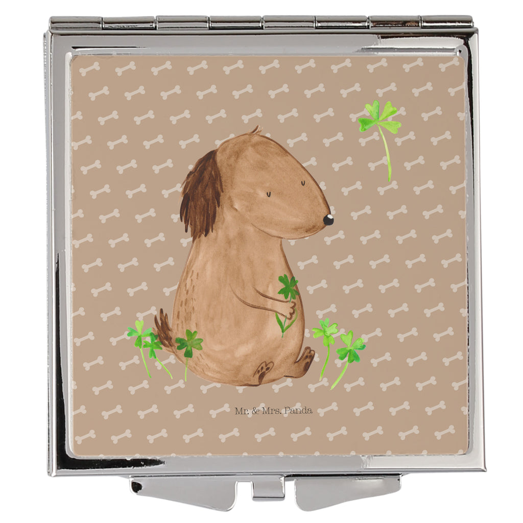 Handtaschenspiegel quadratisch Hund Kleeblatt - mit Spruch - Hundeglück