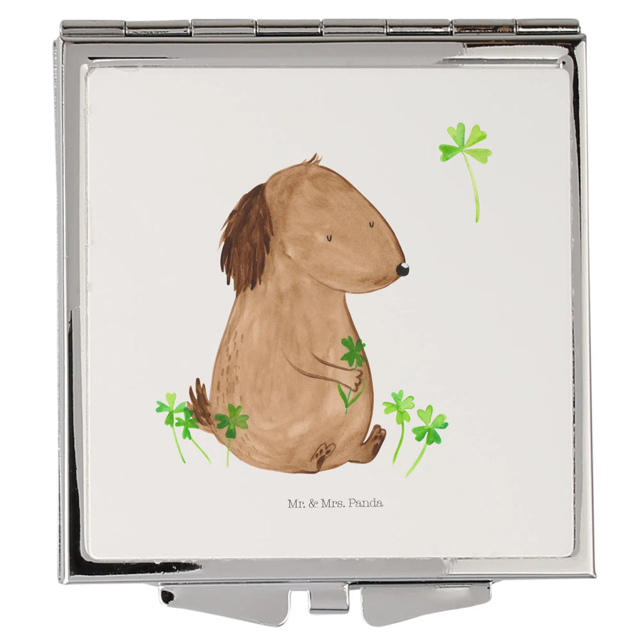 Handtaschenspiegel quadratisch Hund Kleeblatt - ohne Spruch - Weiß