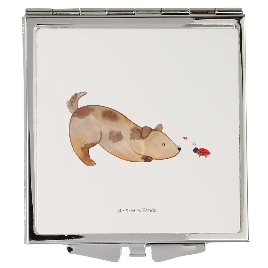 Handtaschenspiegel quadratisch Hund Marienkäfer - ohne Spruch - Weiß