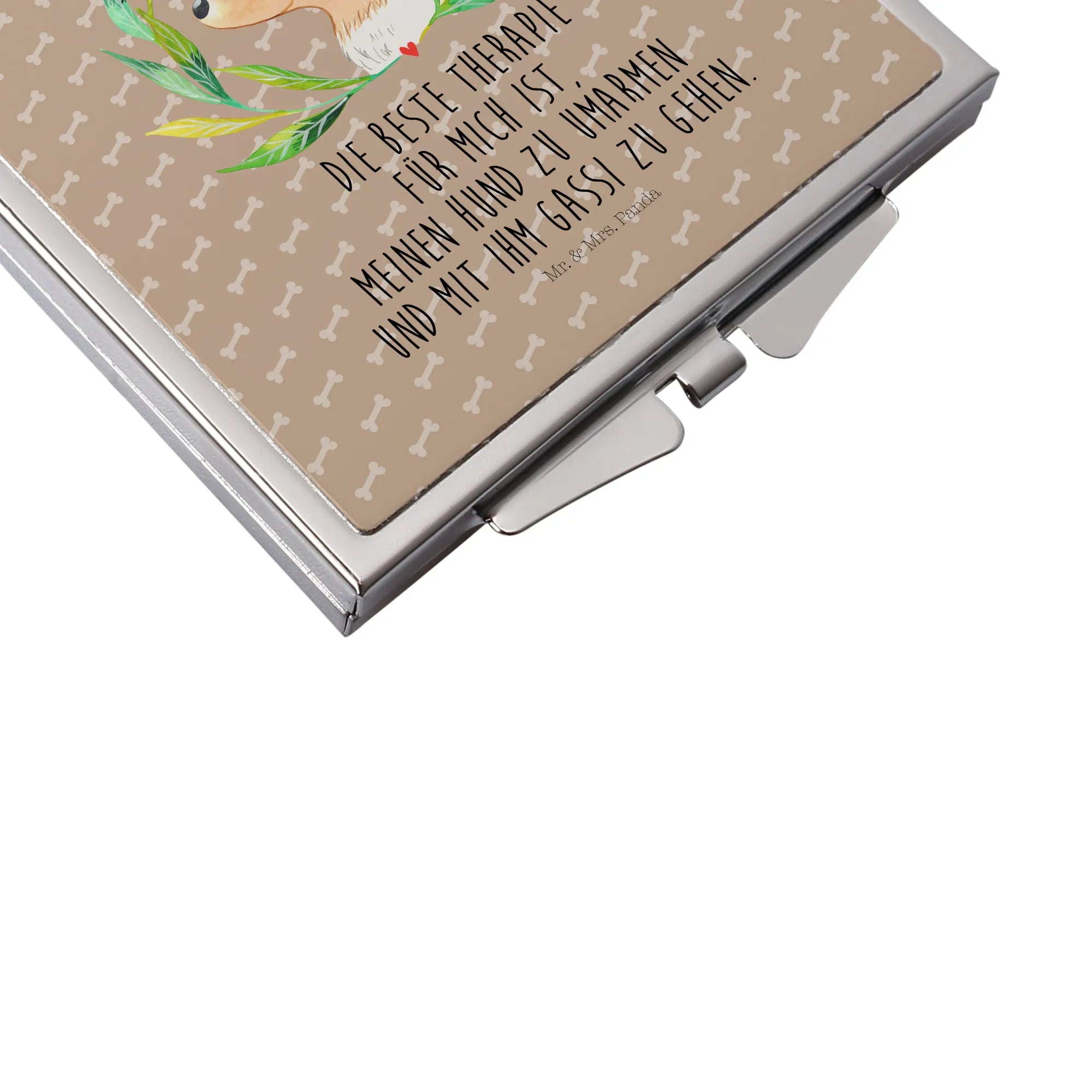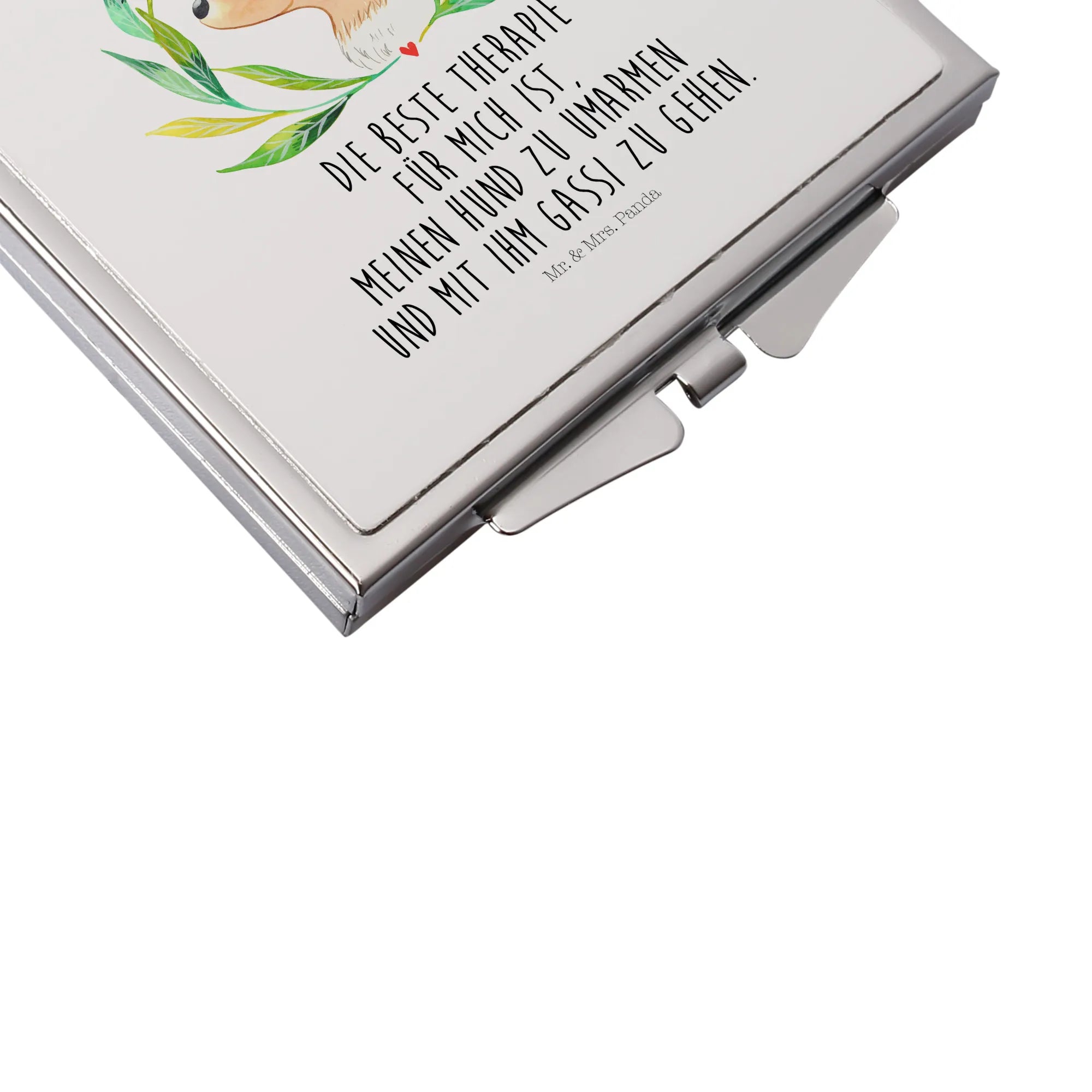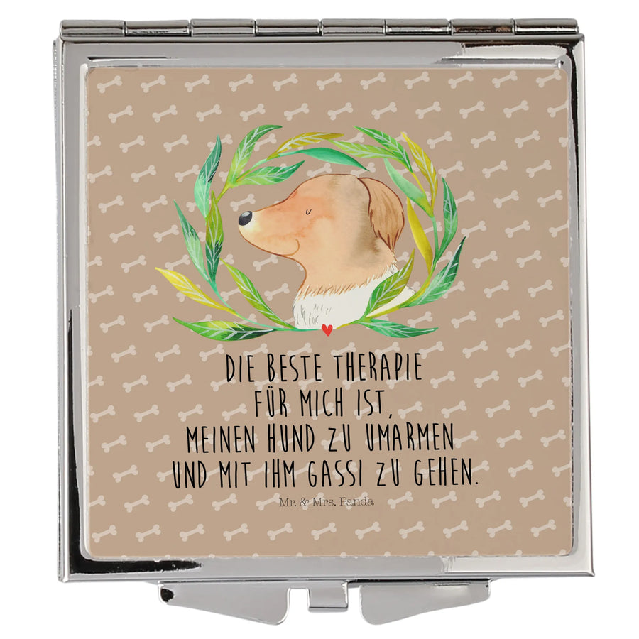 Handtaschenspiegel quadratisch Hund Blumen - mit Spruch - Hundeglück