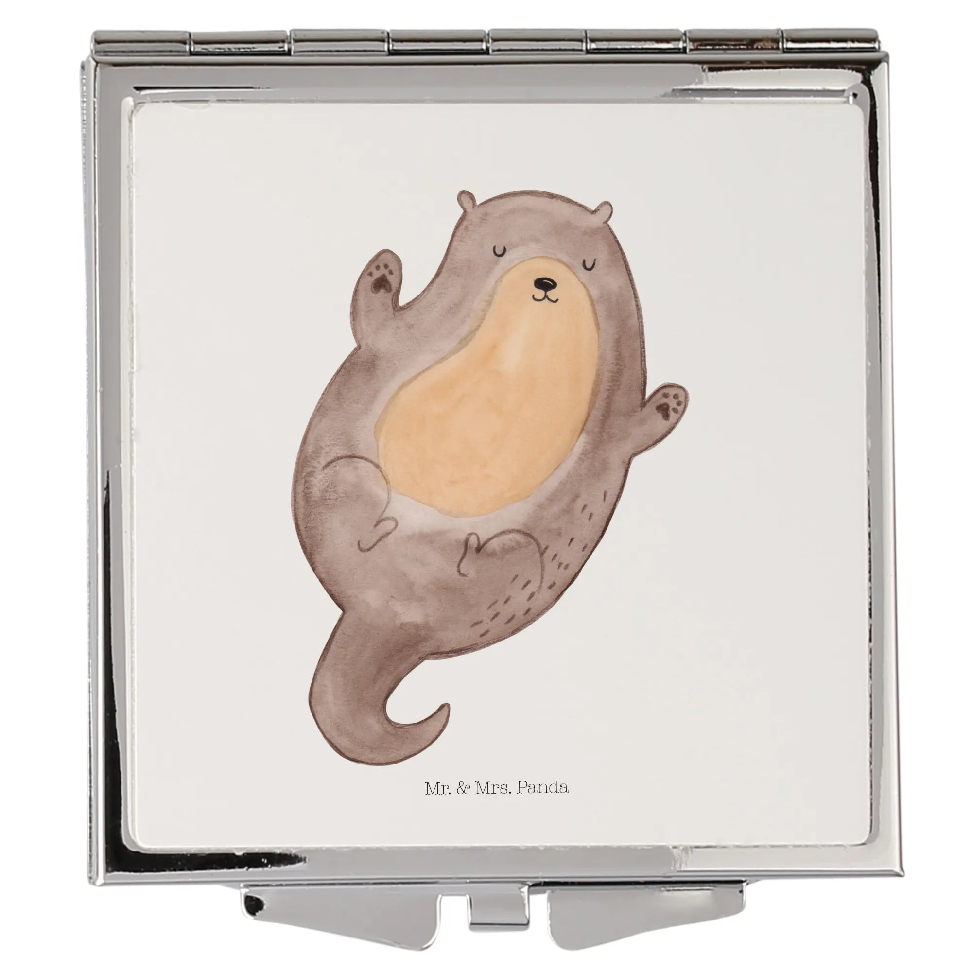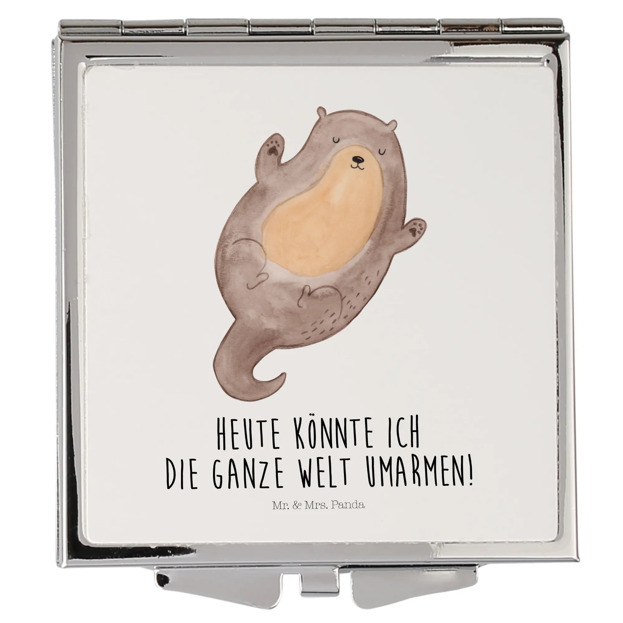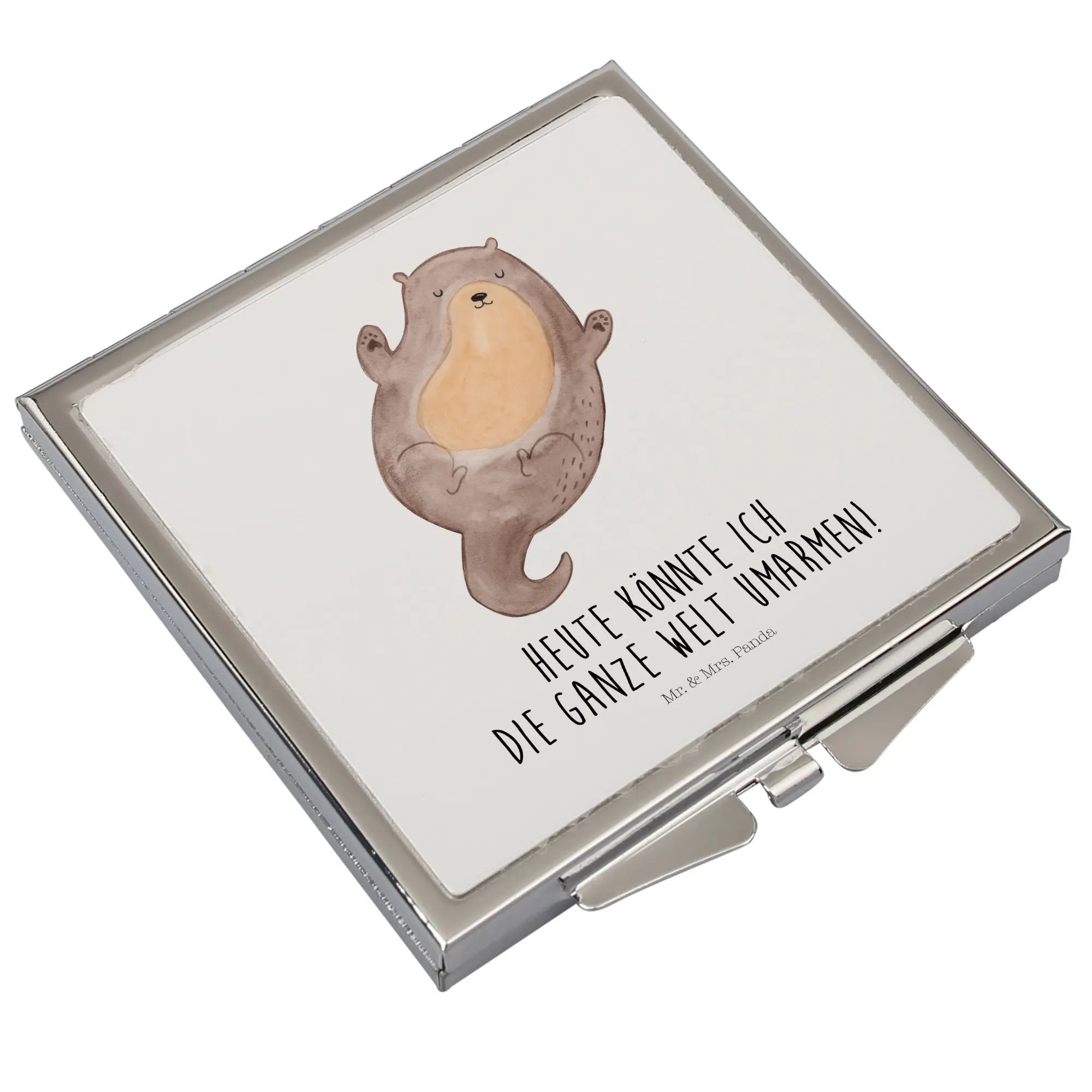 Handtaschenspiegel quadratisch Otter Umarmen - mit Spruch - Weiß