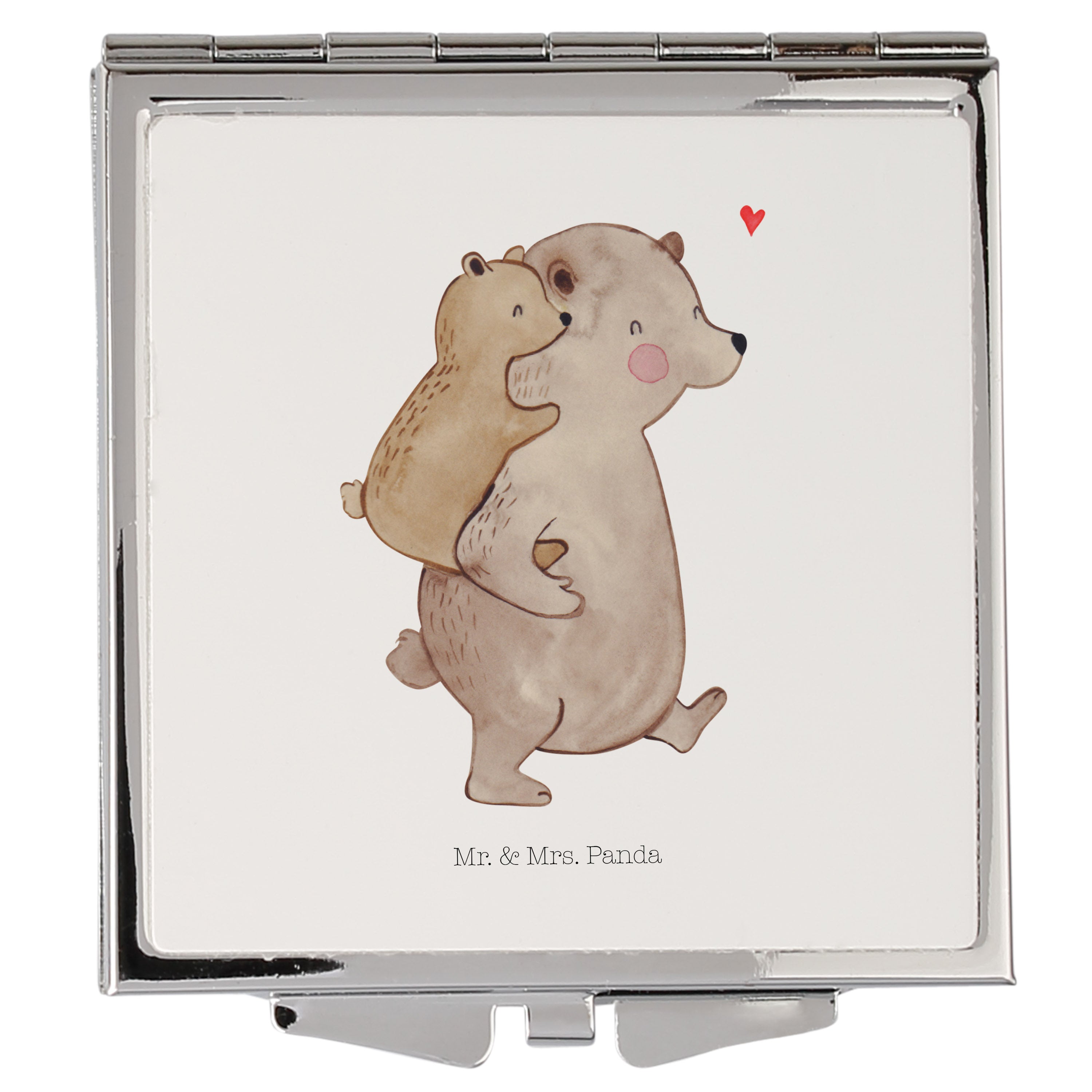 Handtaschenspiegel quadratisch Papa Bär - mit Spruch - Weiß