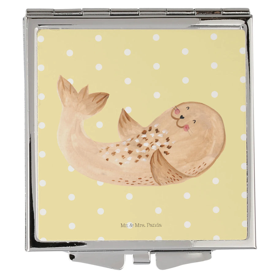 Handtaschenspiegel quadratisch Robbe Liegen - ohne Spruch - Gelb Pastell