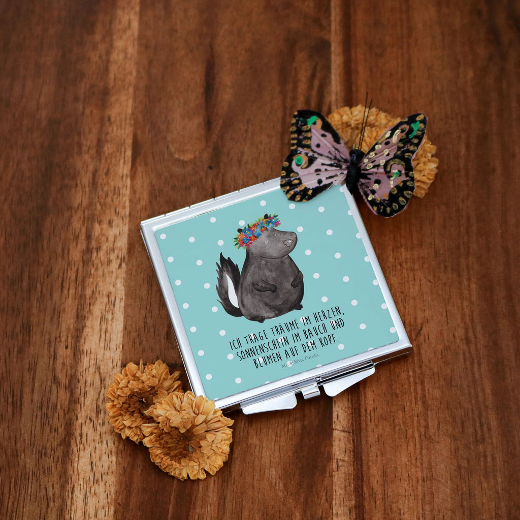 Handtaschenspiegel quadratisch Stinktier Mädchen - mit Spruch - Weiß