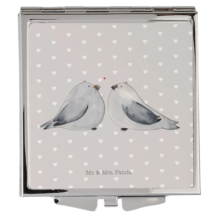 Handtaschenspiegel quadratisch Turteltauben Liebe - ohne Spruch - Grau Pastell