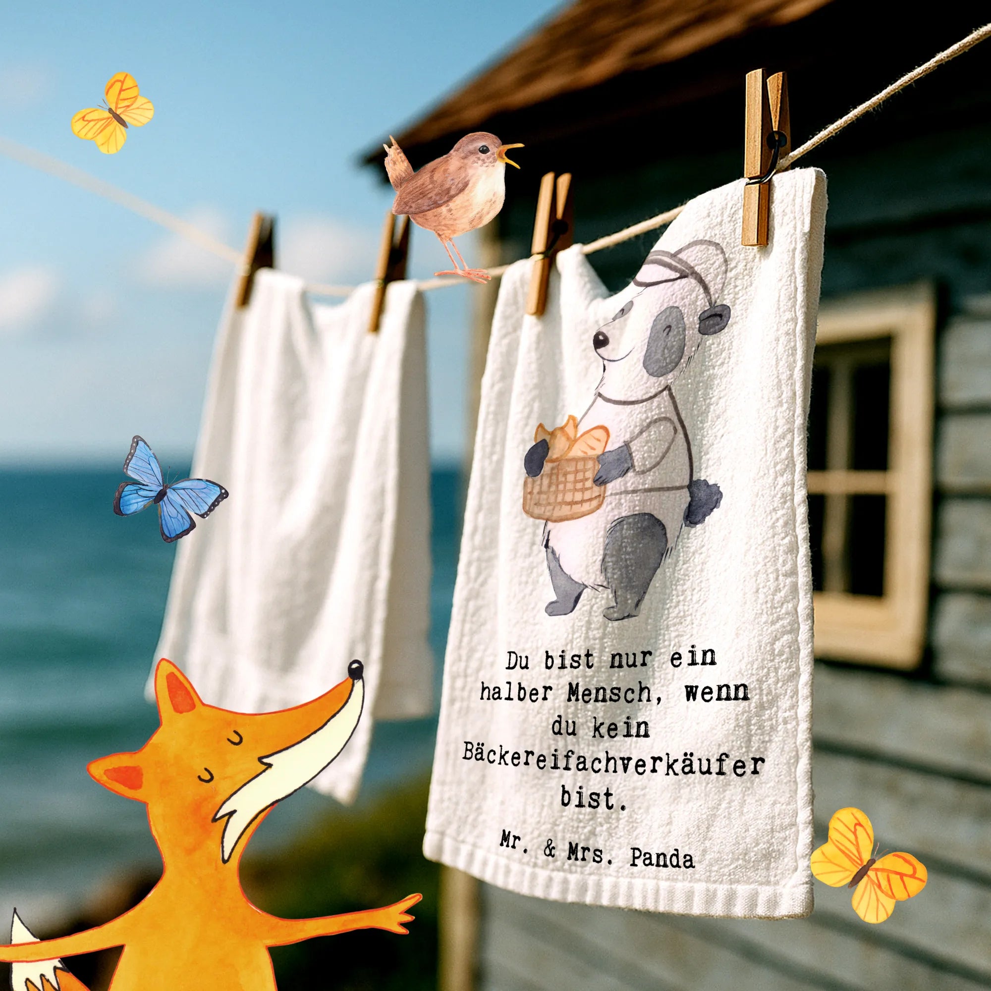 Das Gästetuch "Bäckereifachverkäufer mit Herz" von Mr. & Mrs. Panda ist das perfekte Geschenk für alle, die mit Leidenschaft Backwaren verkaufen und ins Herz ihrer Kunden blicken.