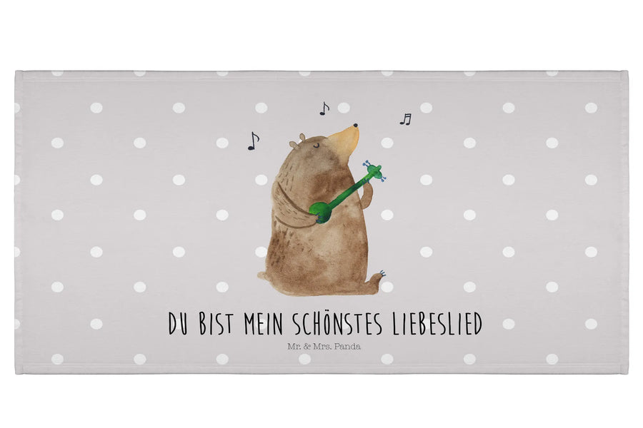Das 50 x 100 Handtuch 'Bär Lied' von Mr. & Mrs. Panda ist das perfekte Geschenk für alle, die Teddy- und Bärenliebhaber sind! Mit dem liebevollen Motiv eines süßen Bären, der auf seiner Gitarre spielt und dem Spruch 'Du bist mein schönstes Liebeslied', bringt es gute Laune und Gemütlichkeit in jedes Badezimmer.