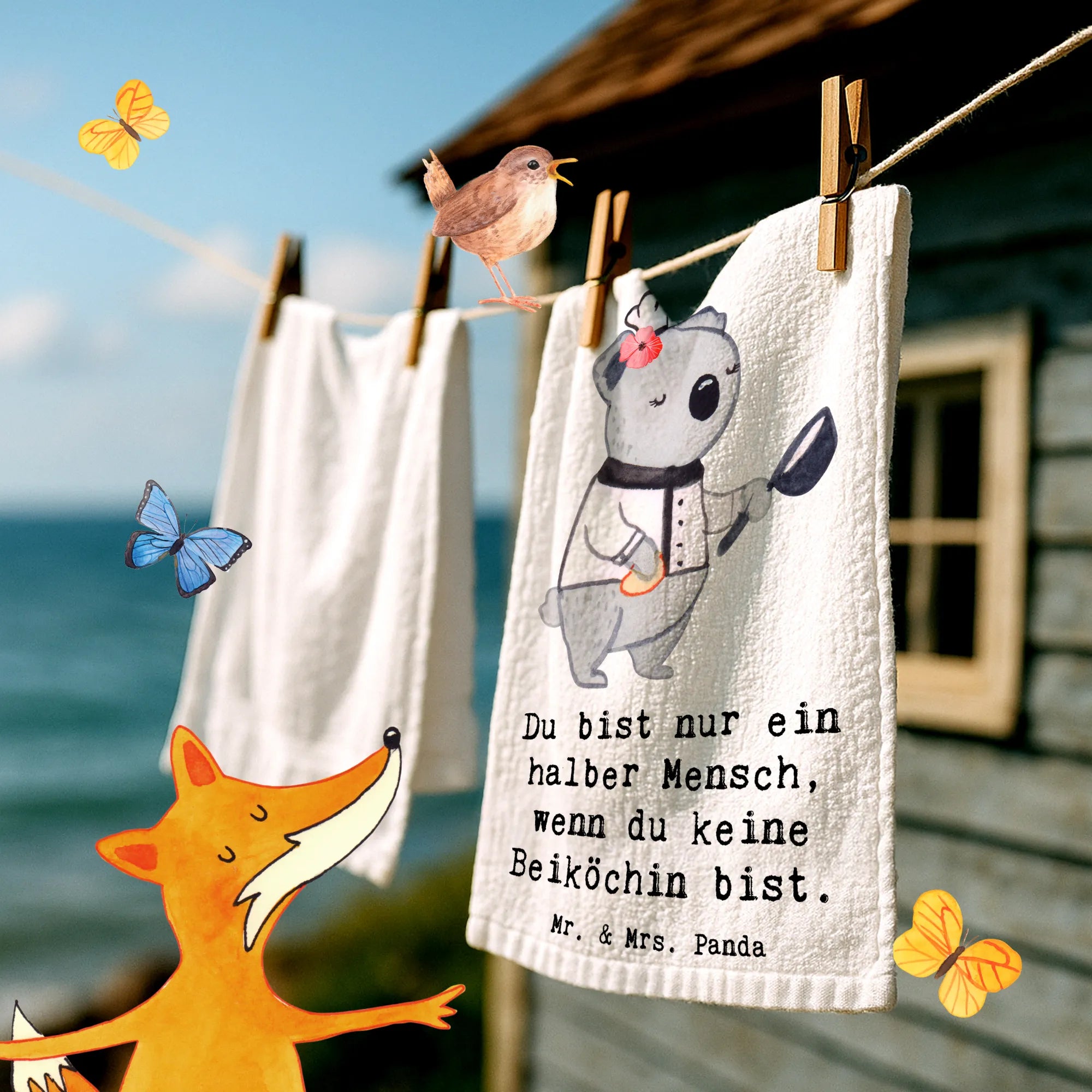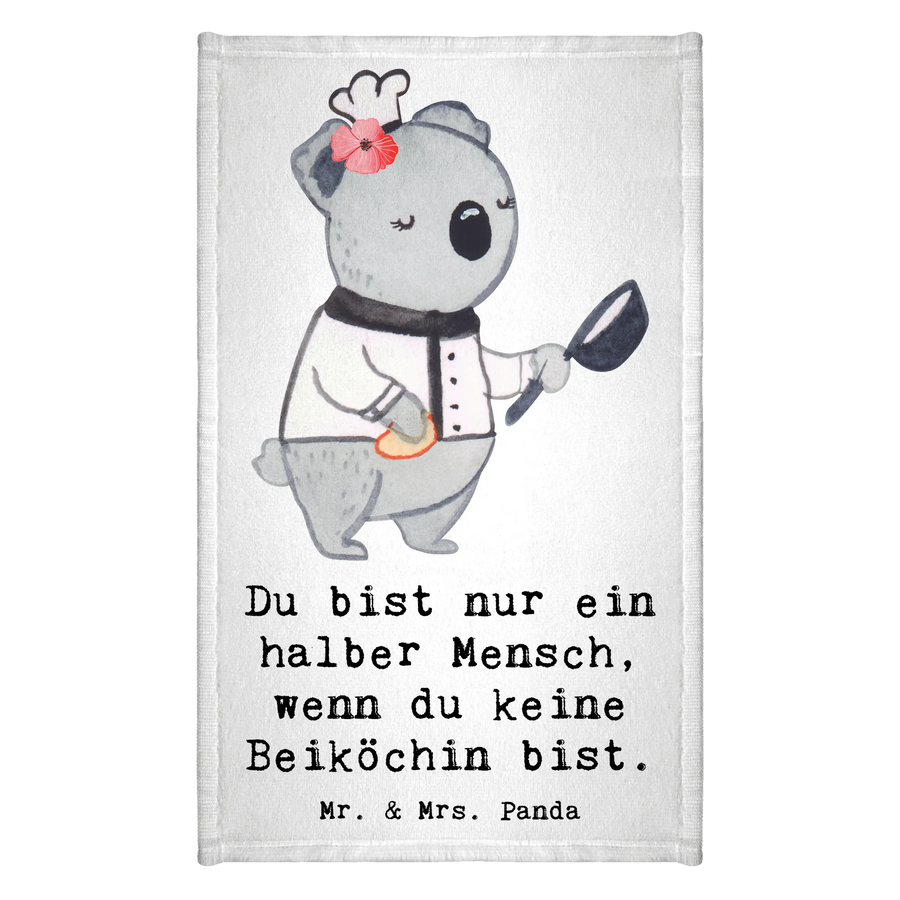 Das Gästetuch "Beiköchin mit Herz" von Mr. & Mrs. Panda ist das perfekte Geschenk für alle, die das Kochen lieben oder in der Gastronomie arbeiten. Mit einem niedlichen Motiv, das eine liebevolle Beiköchin im Koalastil zeigt, bringt dieses Handtuch einen Hauch von Freude und Farbe in jedes Badezimmer oder die Küche.