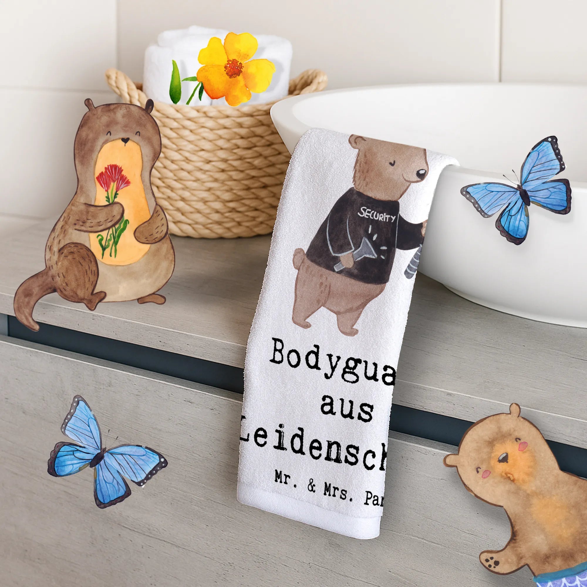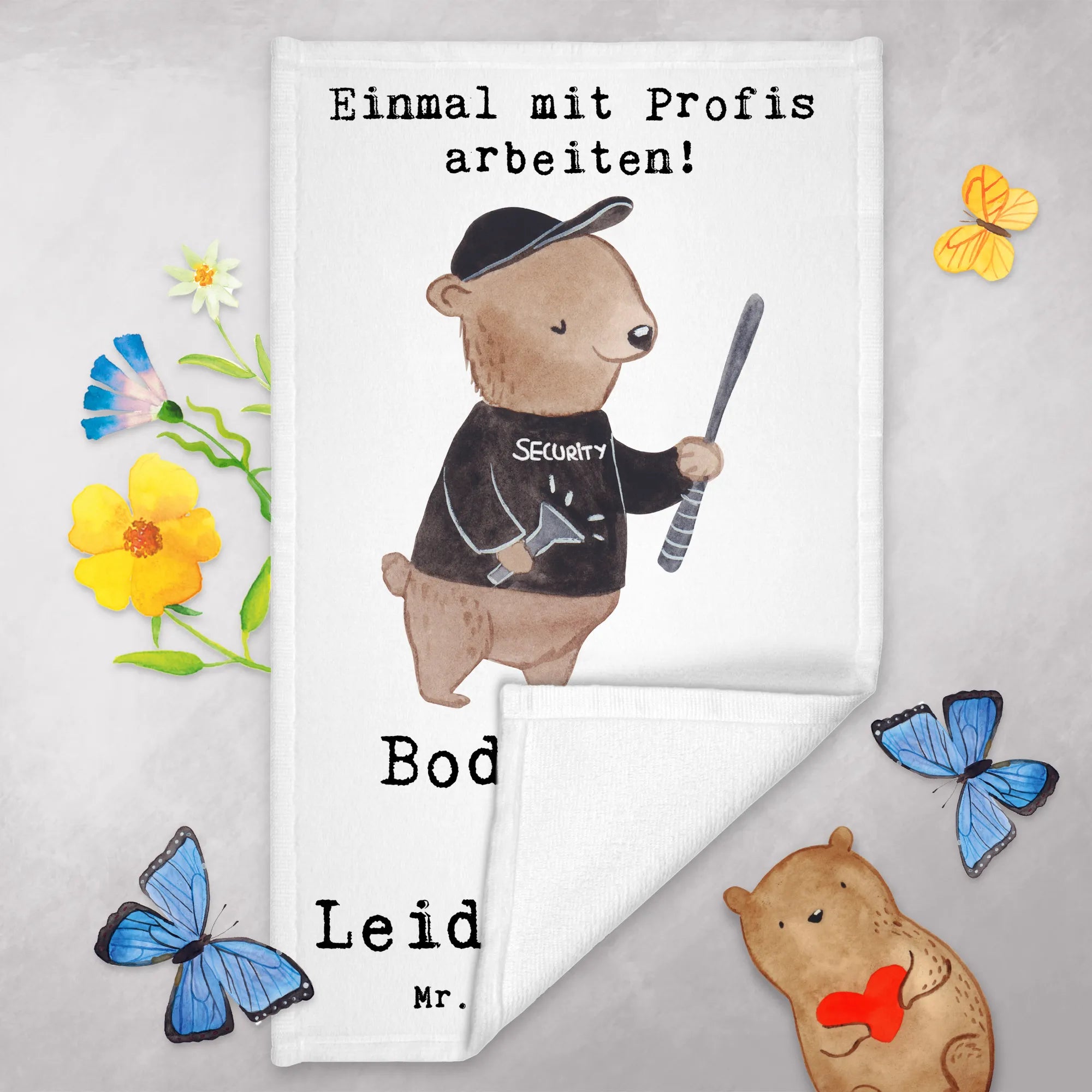 Das Gästetuch "Bodyguard aus Leidenschaft" von Mr. & Mrs. Panda ist ein ganz besonderes Geschenk für alle, die den Beruf des Bodyguards ausüben oder in der Sicherheitsbranche tätig sind. Mit seiner fröhlichen und bunten Gestaltung bringt es Farbe und Freundlichkeit in jedes Badezimmer – ideal für dein Gästebad oder das Badezimmer.