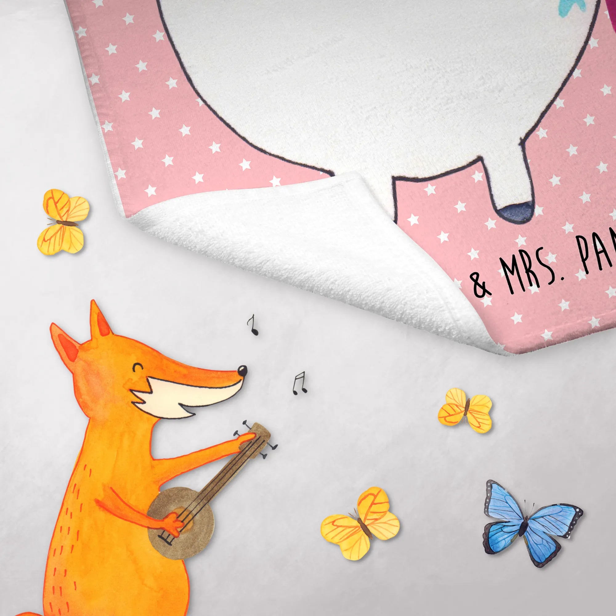 Durch das handgezeichnete Design von Mrs. Panda ist jedes Stück ein Unikat und komplettiert jede Einhorn-Dekoration perfekt. Die Pflege des Handtuchs ist ebenfalls kinderleicht: Es ist bis 30°C in der Maschine waschbar und kann bei niedrigen Temperaturen im Trockner getrocknet werden. So bleibt die Farbenpracht auch nach vielen Wäschen erhalten.