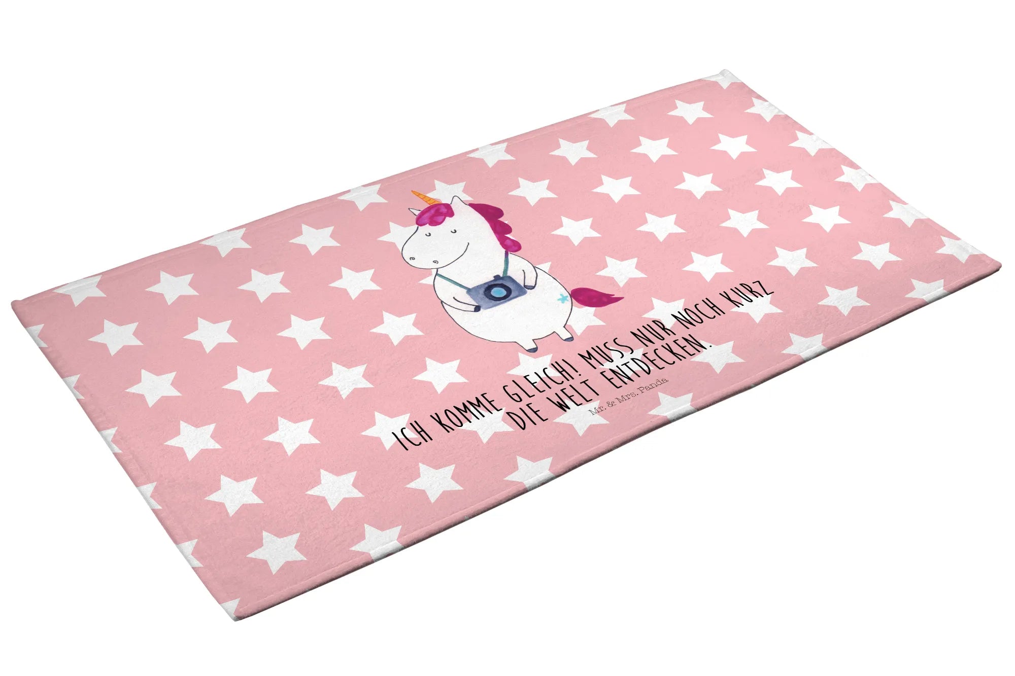 Das 50 x 100 Handtuch von Mr. & Mrs. Panda mit dem süßen Motiv des Einhorn Fotografen ist das perfekte Geschenk für alle kleinen und großen Weltenbummler! Dieses handliche und flauschige Handtuch sieht nicht nur fantastisch aus, es ist auch funktional, weich und ein wahrer Blickfang in jedem Badezimmer. Mit seinen strahlenden Farben zaubert es ein Lächeln auf jedes Gesicht und belebt jeden Raum.