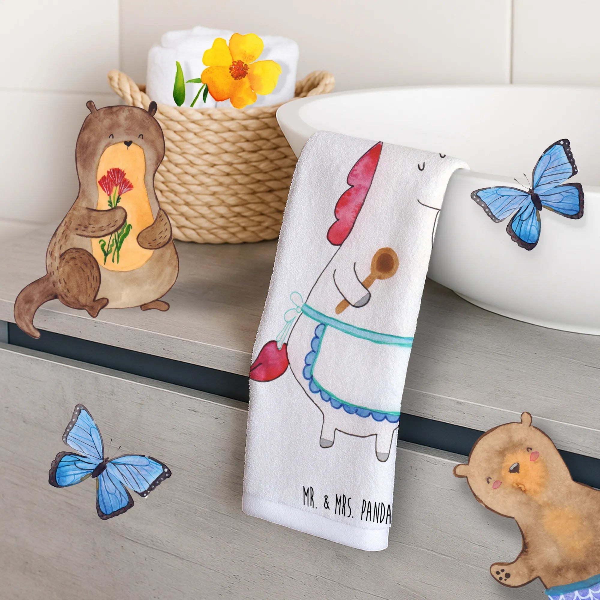 Die Einhorn-Kollektion von Mr. & Mrs. Panda ist eine liebevolle und einzigartige Zusammenstellung von Produkten, die die Welt der Einhörner feiern. Jedes Motiv wird von der talentierten Frau Panda handgezeichnet und mit viel Liebe zum Detail gestaltet. Das Handtuch "Einhorn Küchenfee" ist da keine Ausnahme und strahlt in strahlenden Farben, die dein Badezimmer erhellen und die Herzen von Groß und Klein höher schlagen lassen.