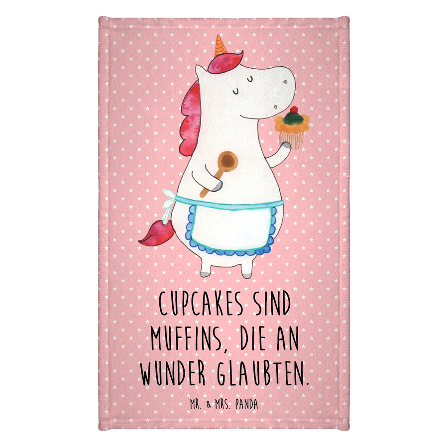 Das Einhorn Küchenfee Gästehandtuch von Mr. & Mrs. Panda ist der perfekte Begleiter für alle, die die zauberhafte Welt der Einhörner lieben. Mit seinem fröhlichen Design und dem zauberhaften Spruch "Cupcakes sind Muffins, die an Wunder glaubten" bringt es einen Hauch von Magie in jedes Badezimmer oder Gästebad.