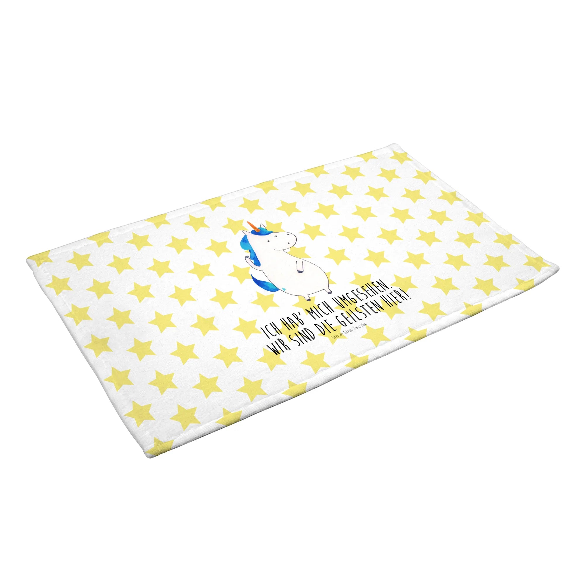 Das Gästetuch Einhorn Mann von Mr. & Mrs. Panda ist das perfekte Geschenk für alle Einhorn-Liebhaber und bietet eine wunderbare Möglichkeit, deinen Gästen ein Lächeln ins Gesicht zu zaubern! 🎉 Mit seinem fröhlichen und bunten Design aus der zauberhaften Einhorn-Kollektion bringt dieses Handtuch gute Laune in dein Badezimmer.