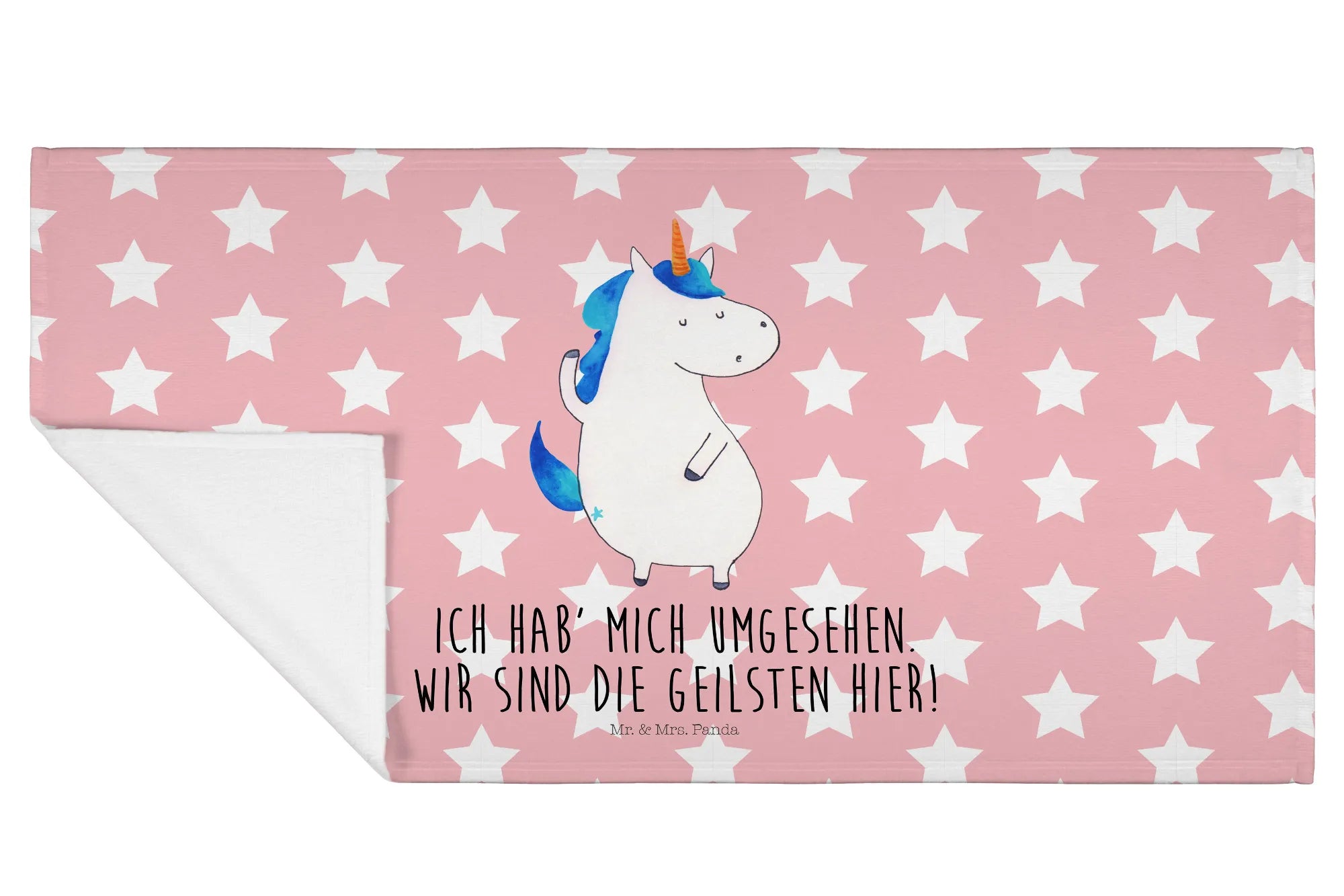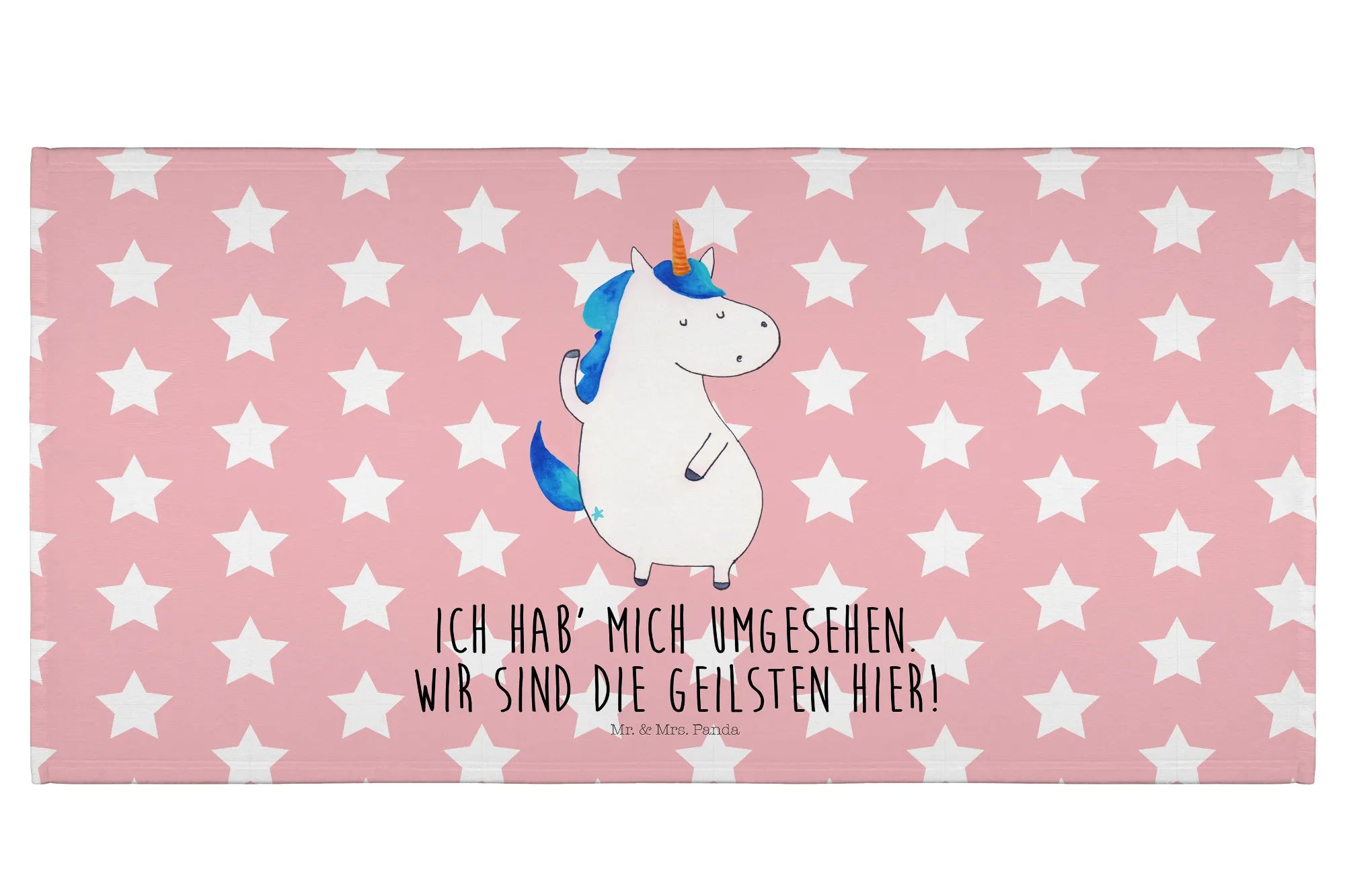 Das 50 x 100 cm große Handtuch mit dem coolen Einhorn-Motiv von Mr. & Mrs. Panda ist das perfekte Geschenk für alle Einhorn-Liebhaber! Egal ob für Kinder, Freunde oder Familienmitglieder, dieses Handtuch bringt Farbe und Freude in jedes Badezimmer. Das süße Einhorn zeigt stolz sein Horn und vermittelt mit seinem fröhlichen Aussehen die Botschaft: 'Wir sind die Geilsten hier!'.