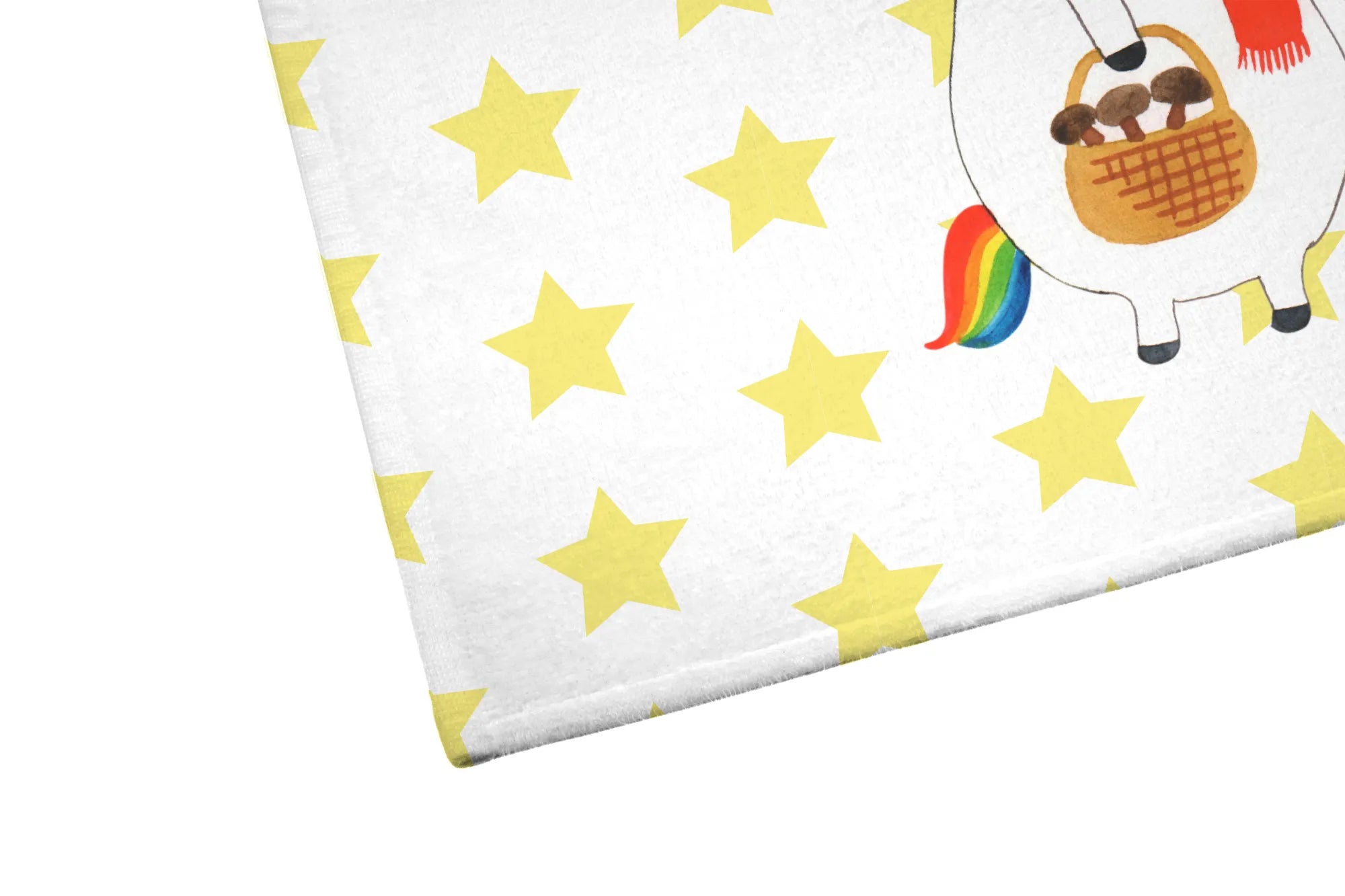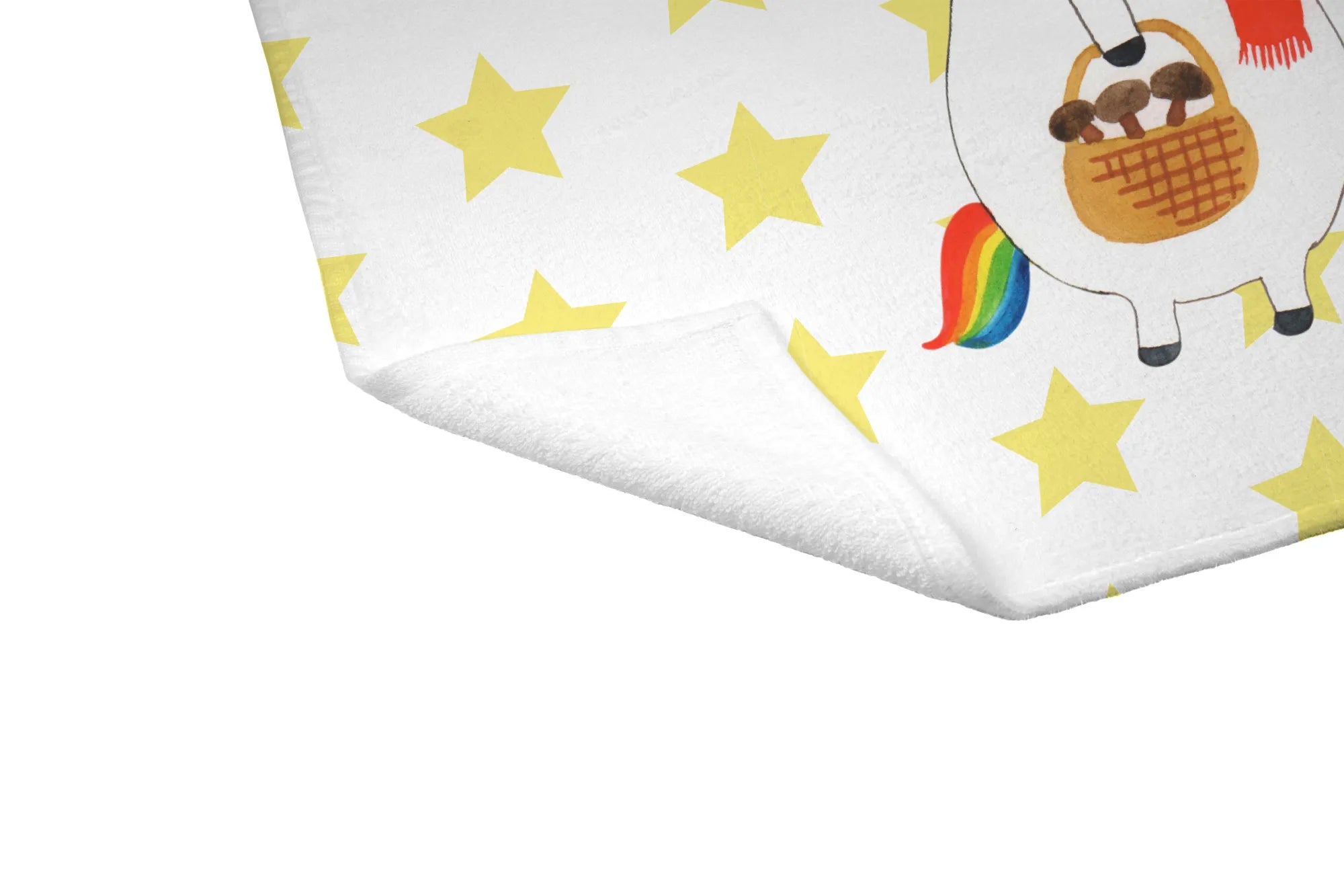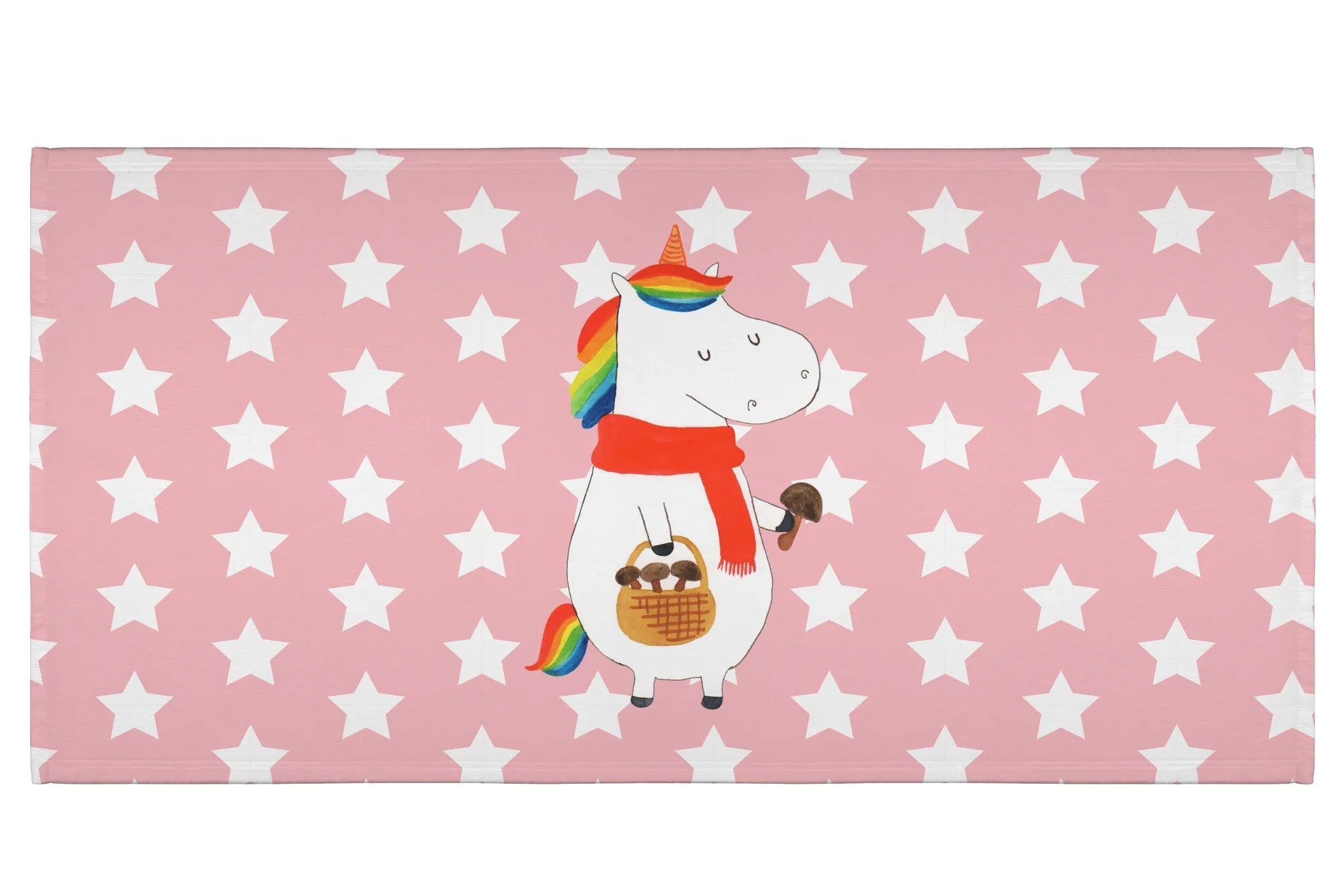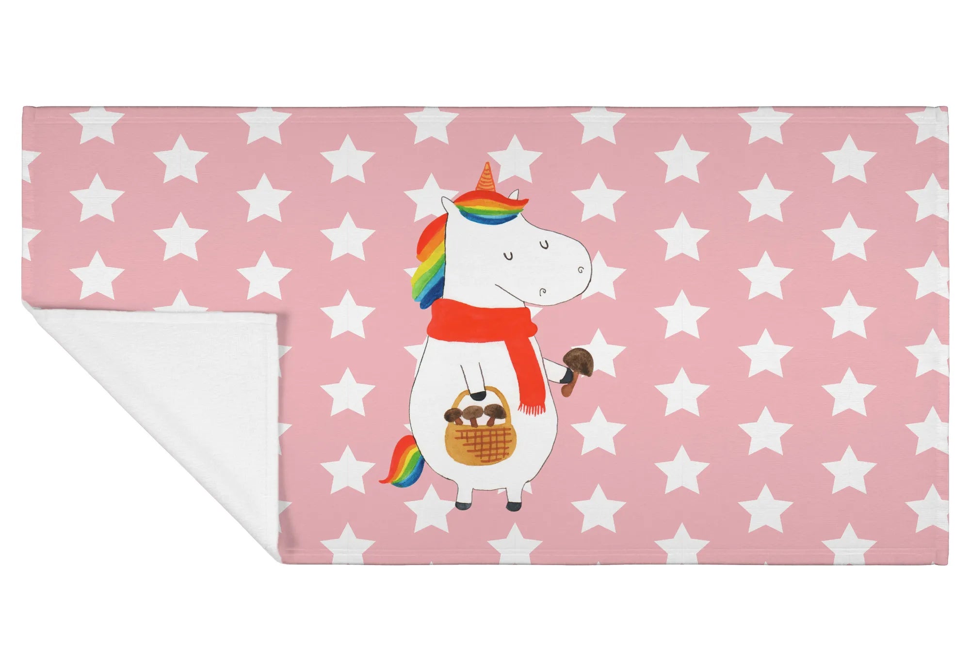 Jeder Zentimeter des Handtuchs ist mit einer bunten, liebevollen Illustration eines fröhlichen Einhorns verziert, das im Wald nach Pilzen sucht. Diese liebevoll handgezeichnete Grafik bringt die zauberhafte Welt der Einhörner direkt in dein Zuhause.