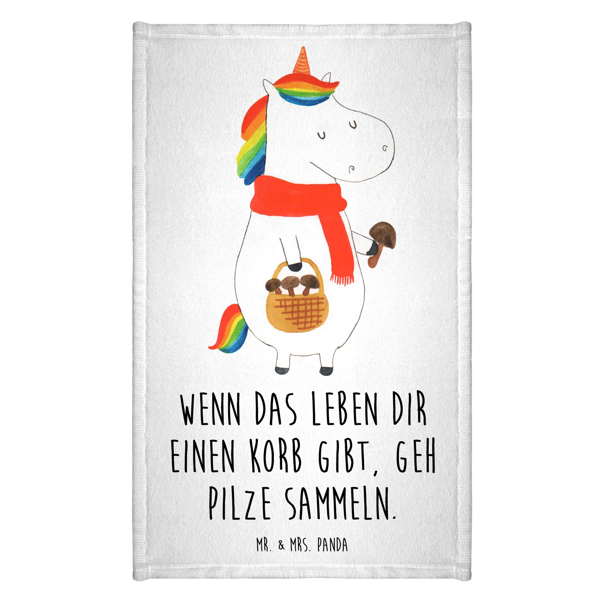 Entdecke das bezaubernde Gästehandtuch Einhorn Pilz aus der Einhorn-Kollektion von Mr. & Mrs. Panda! Dieses handgefertigte Tuch ist nicht nur ein praktisches Accessoire für dein Badezimmer oder dein Gästebad, sondern auch ein echtes Highlight. Mit einem farbenfrohen Motiv eines süßen Einhorns, das fröhlich im Wald Pilze sammelt, zaubert es jedem Gast ein Lächeln ins Gesicht.