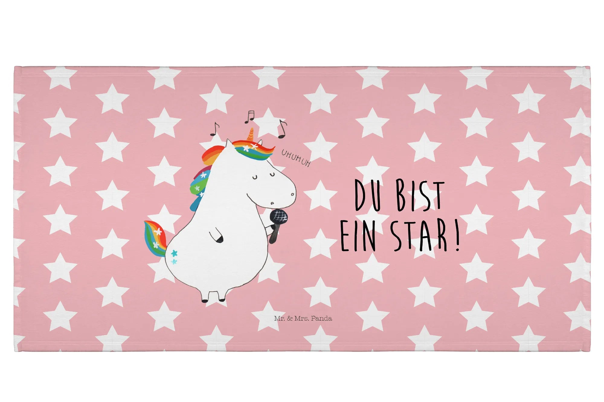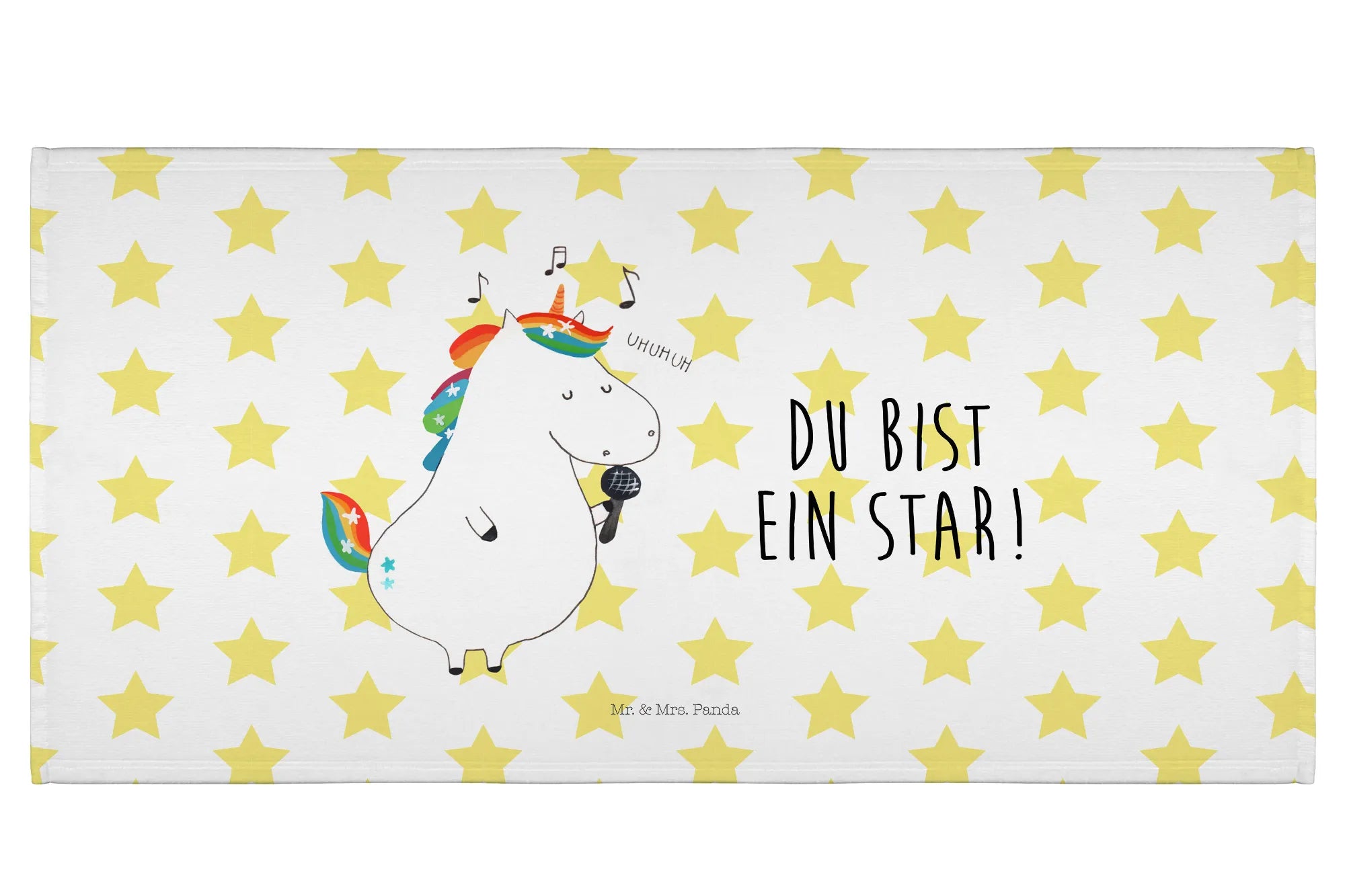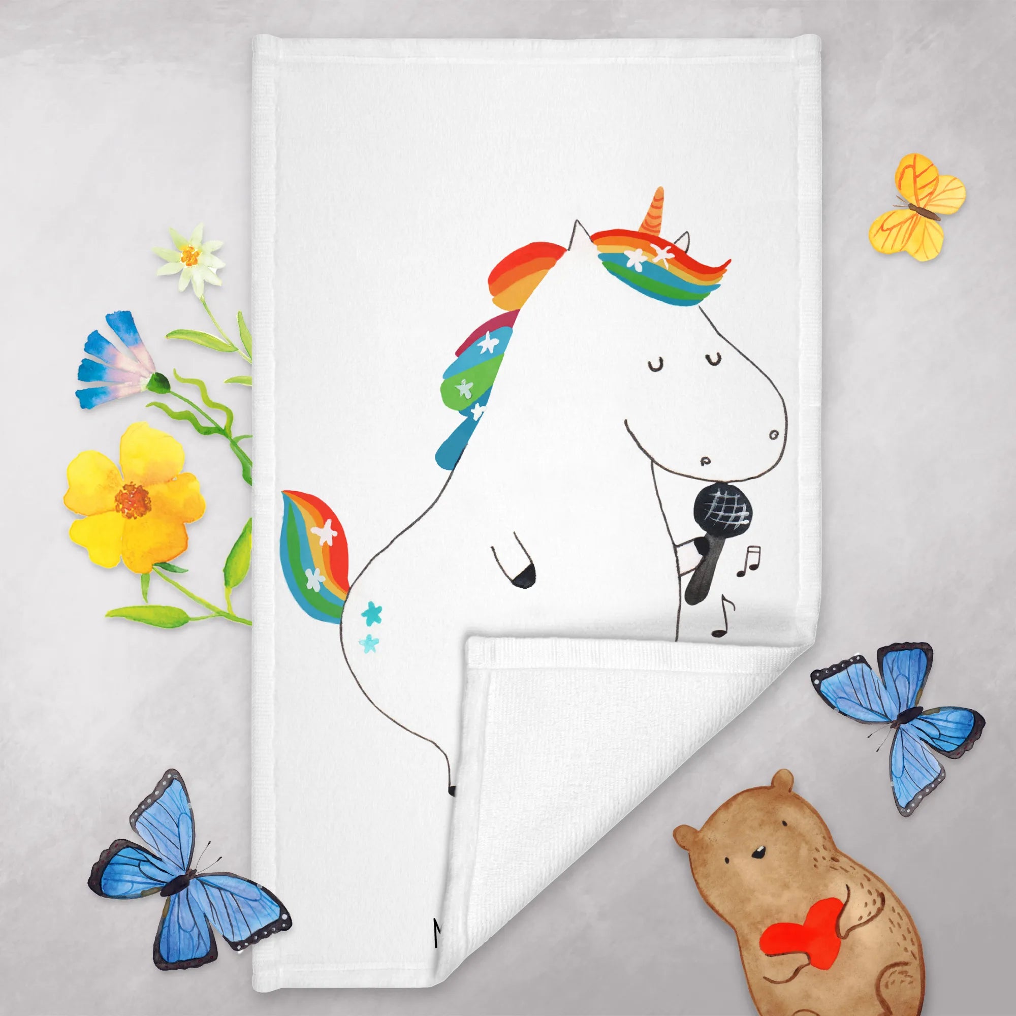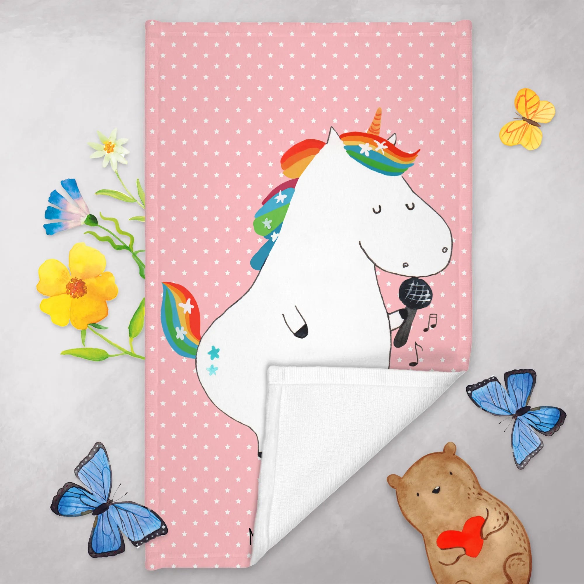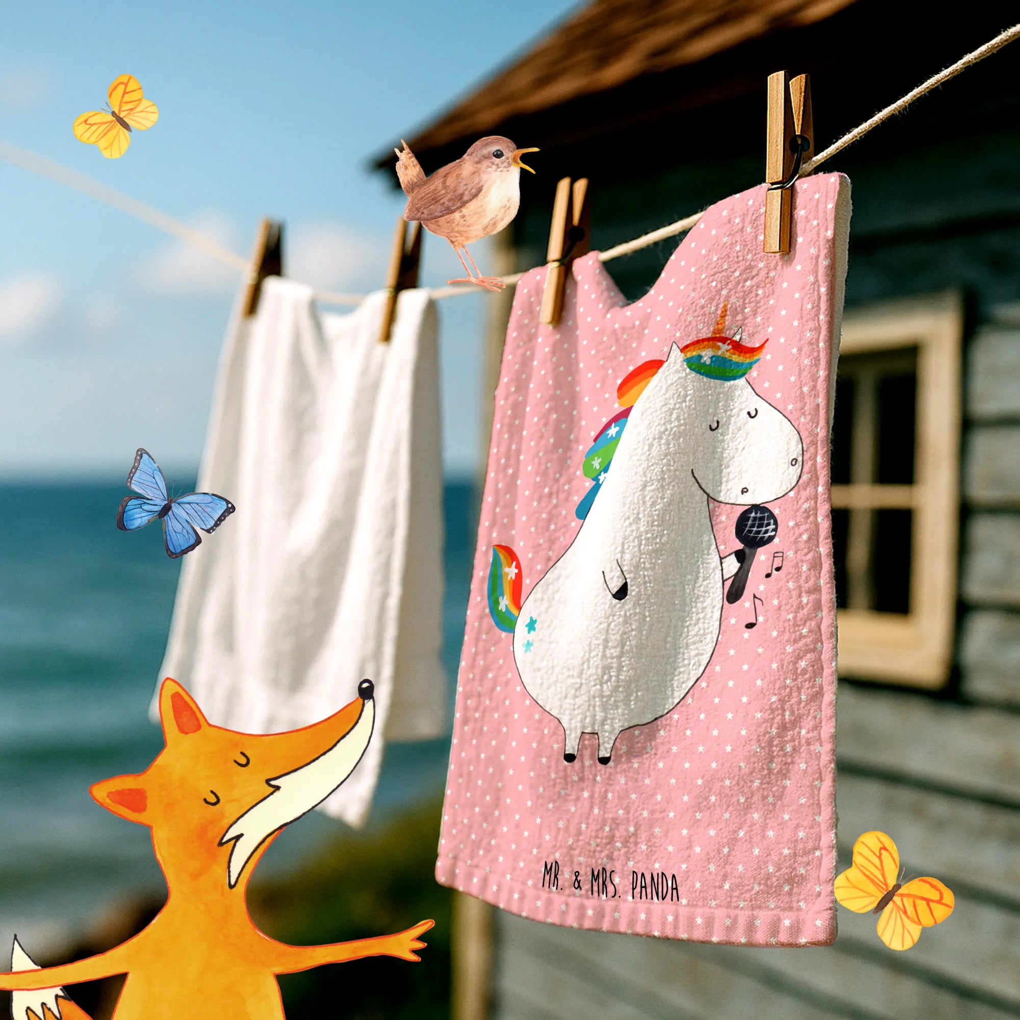 Das perfekte Gästehandtuch von Mr. & Mrs. Panda ist nicht nur ein praktisches Accessoire für dein Bad, sondern ein absolutes Must-Have für alle Einhorn-Fans! Mit dem zauberhaften Motiv des Einhorn Sängers aus der beliebten Einhorn-Kollektion zieht dieses Handtuch alle Blicke auf sich. Die bunten, strahlenden Farben und das liebevoll handgezeichnete Design machen es zu einem Highlight in jedem Badezimmer.