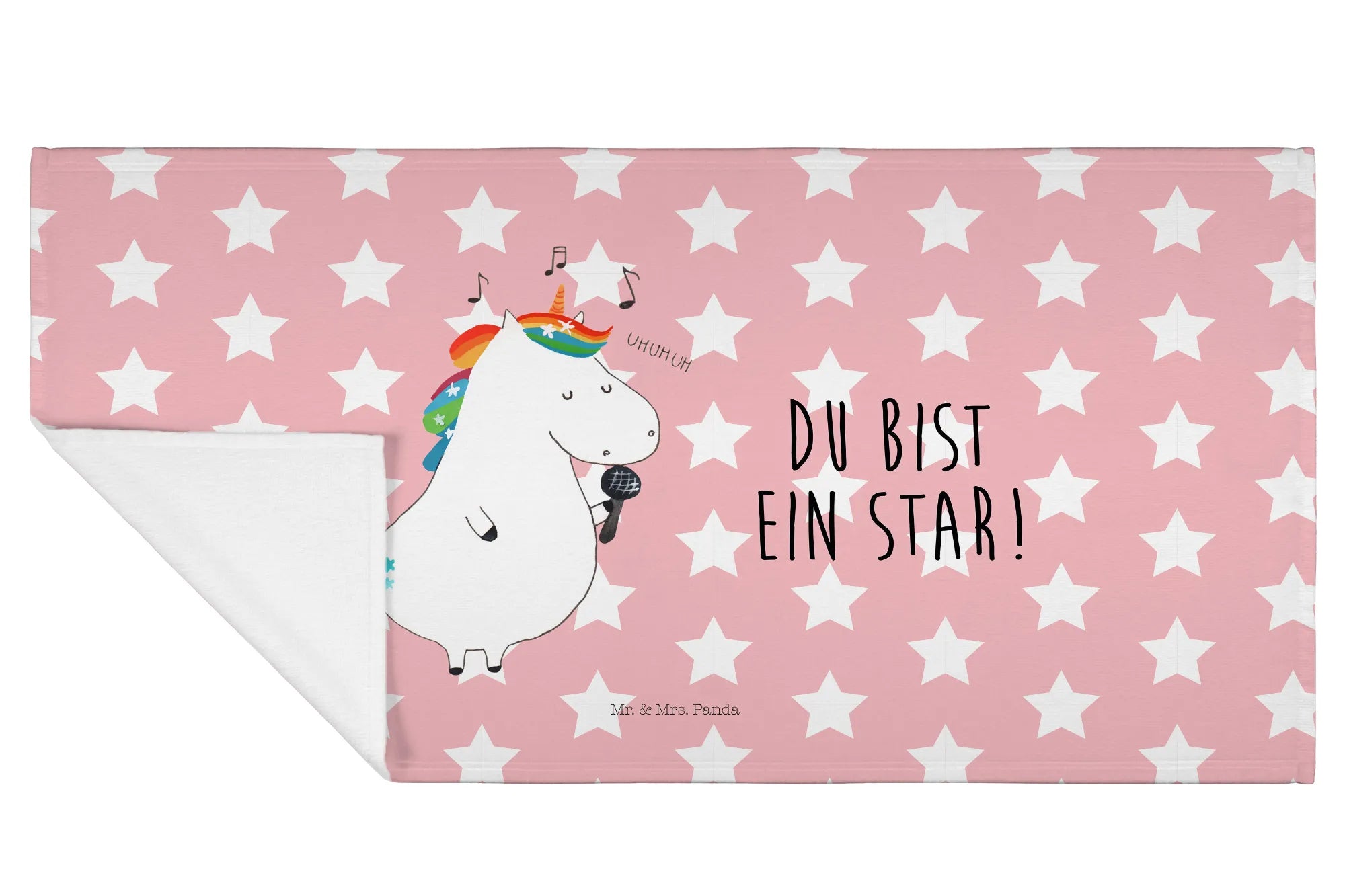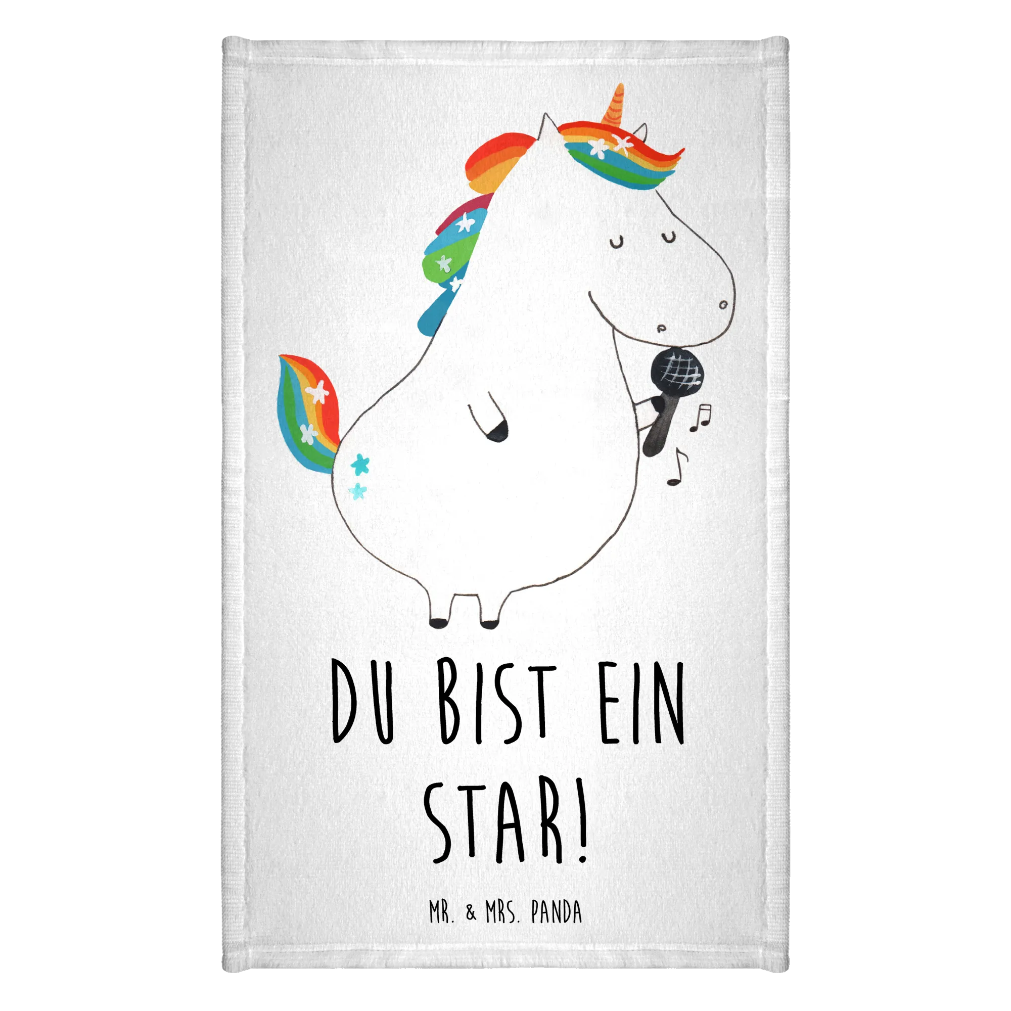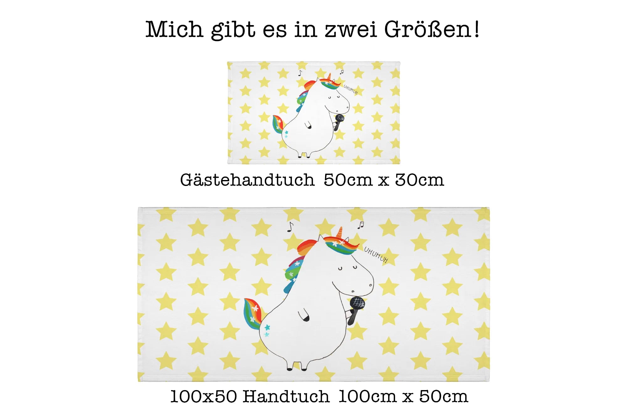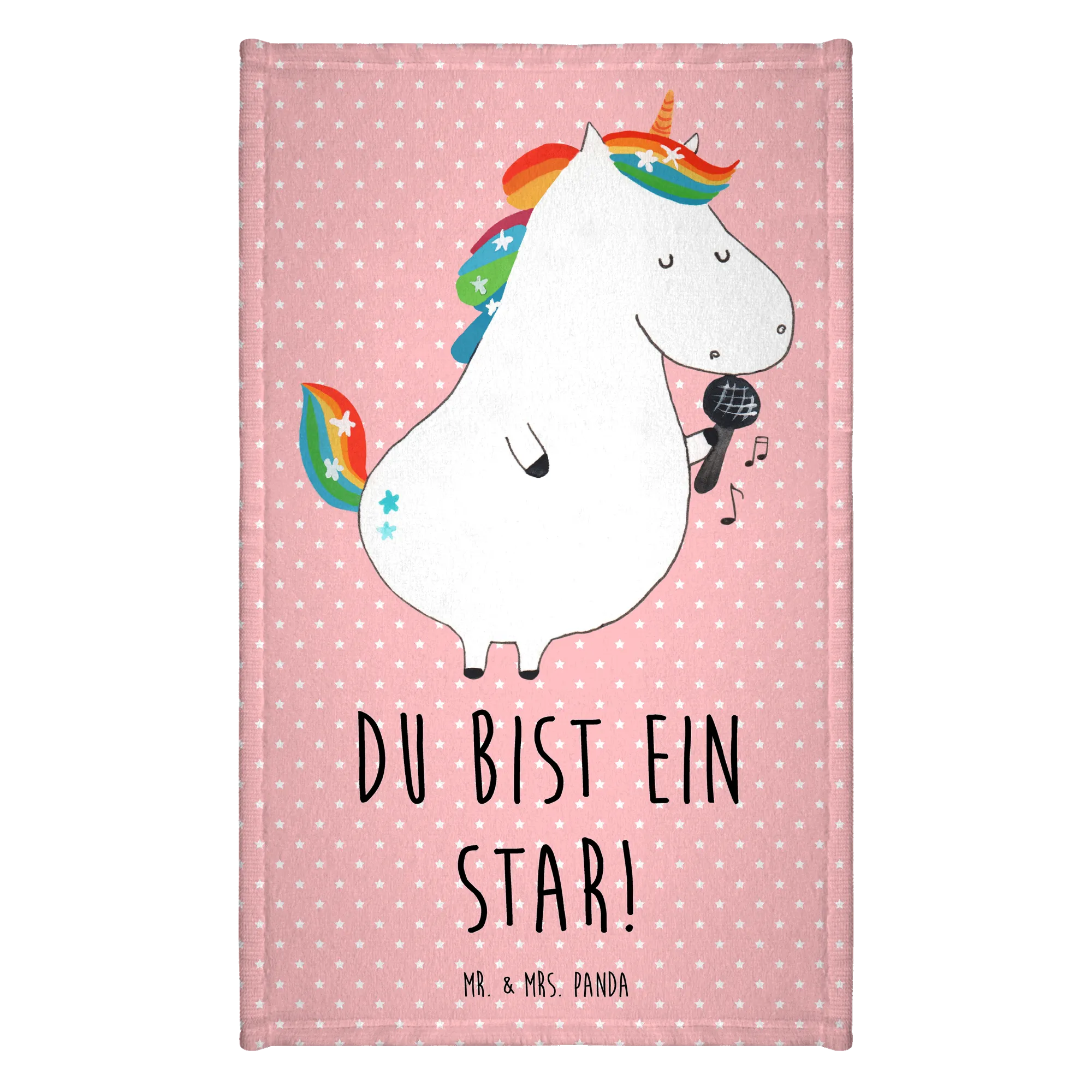 Das perfekte Gästehandtuch von Mr. & Mrs. Panda ist nicht nur ein praktisches Accessoire für dein Bad, sondern ein absolutes Must-Have für alle Einhorn-Fans! Mit dem zauberhaften Motiv des Einhorn Sängers aus der beliebten Einhorn-Kollektion zieht dieses Handtuch alle Blicke auf sich. Die bunten, strahlenden Farben und das liebevoll handgezeichnete Design machen es zu einem Highlight in jedem Badezimmer.