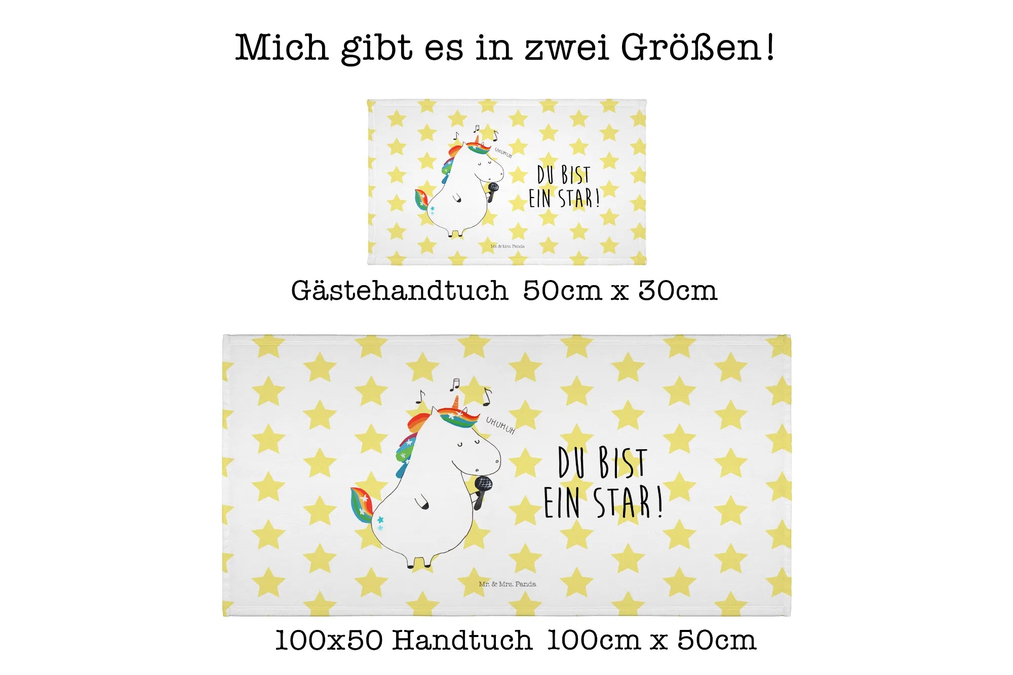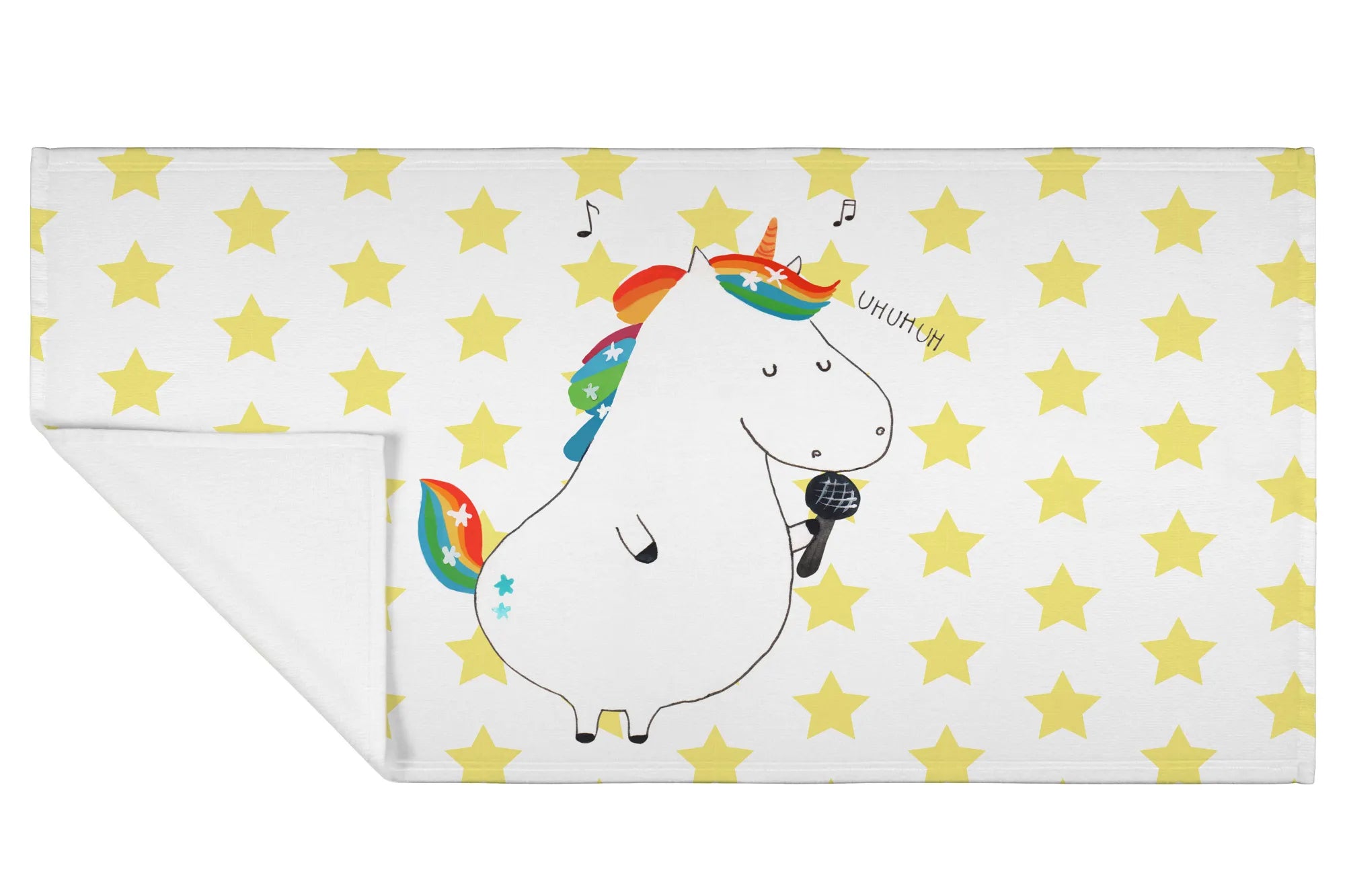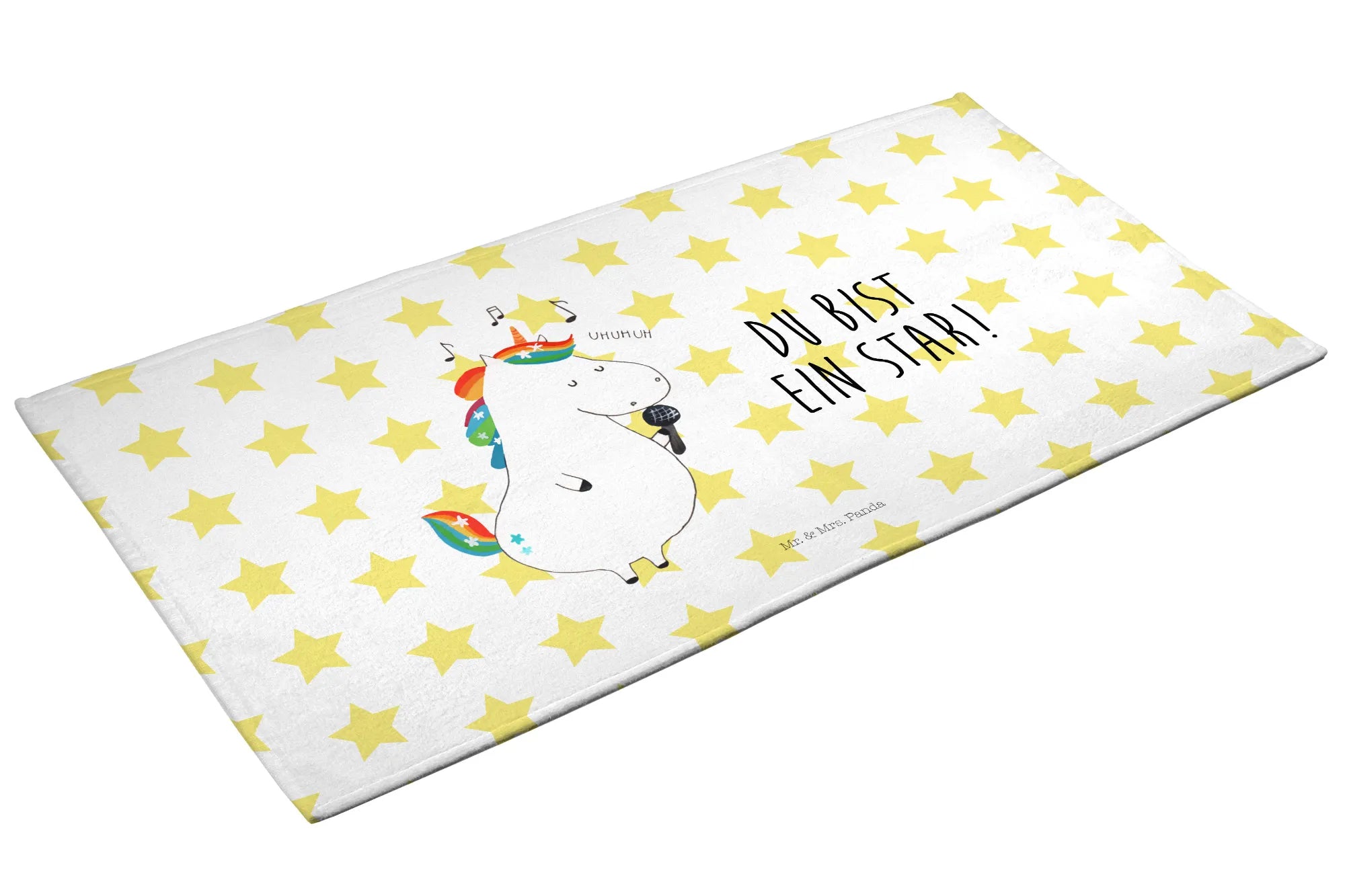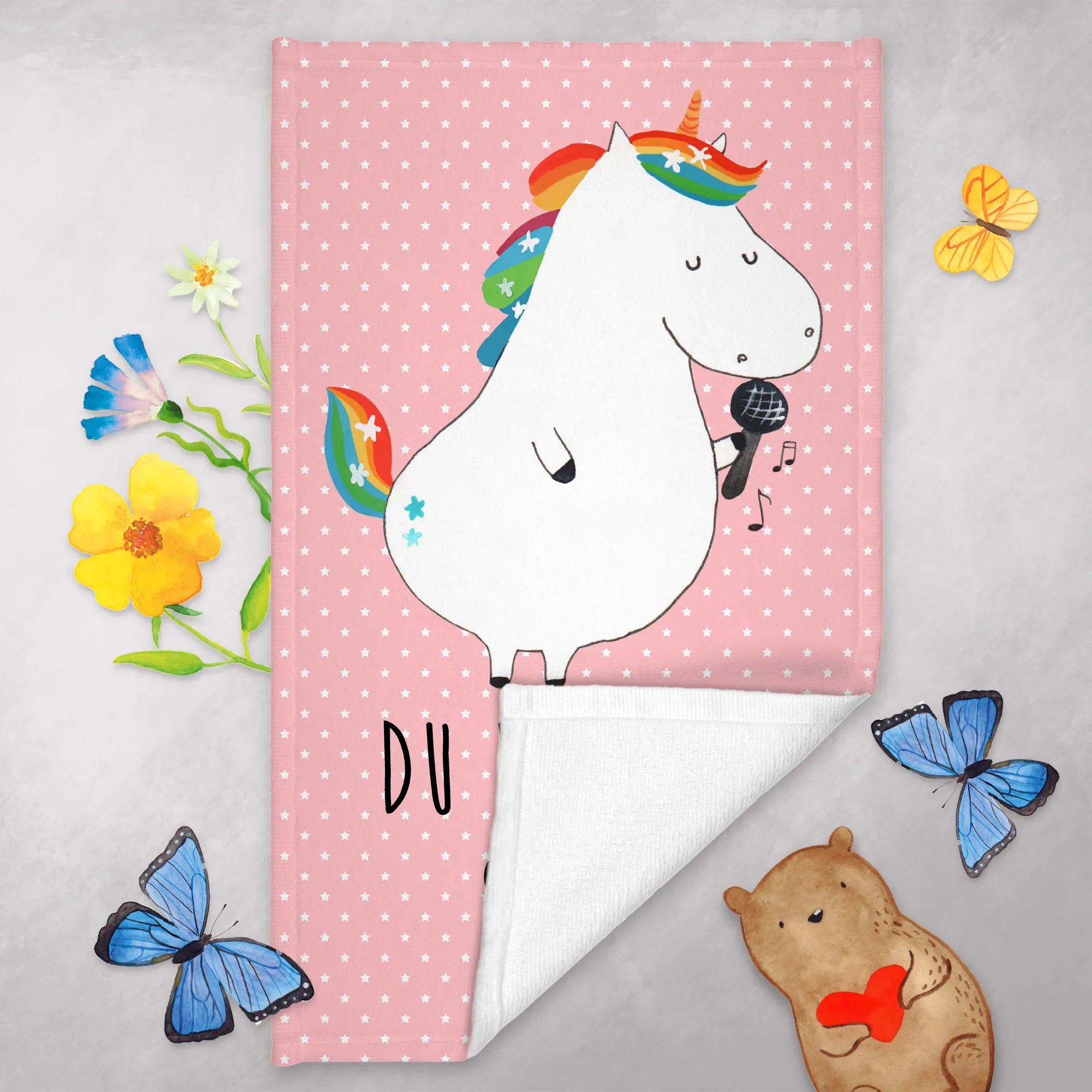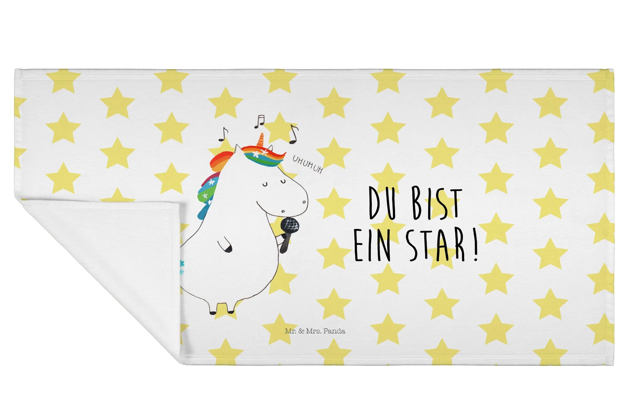 Das perfekte Gästehandtuch von Mr. & Mrs. Panda ist nicht nur ein praktisches Accessoire für dein Bad, sondern ein absolutes Must-Have für alle Einhorn-Fans! Mit dem zauberhaften Motiv des Einhorn Sängers aus der beliebten Einhorn-Kollektion zieht dieses Handtuch alle Blicke auf sich. Die bunten, strahlenden Farben und das liebevoll handgezeichnete Design machen es zu einem Highlight in jedem Badezimmer.