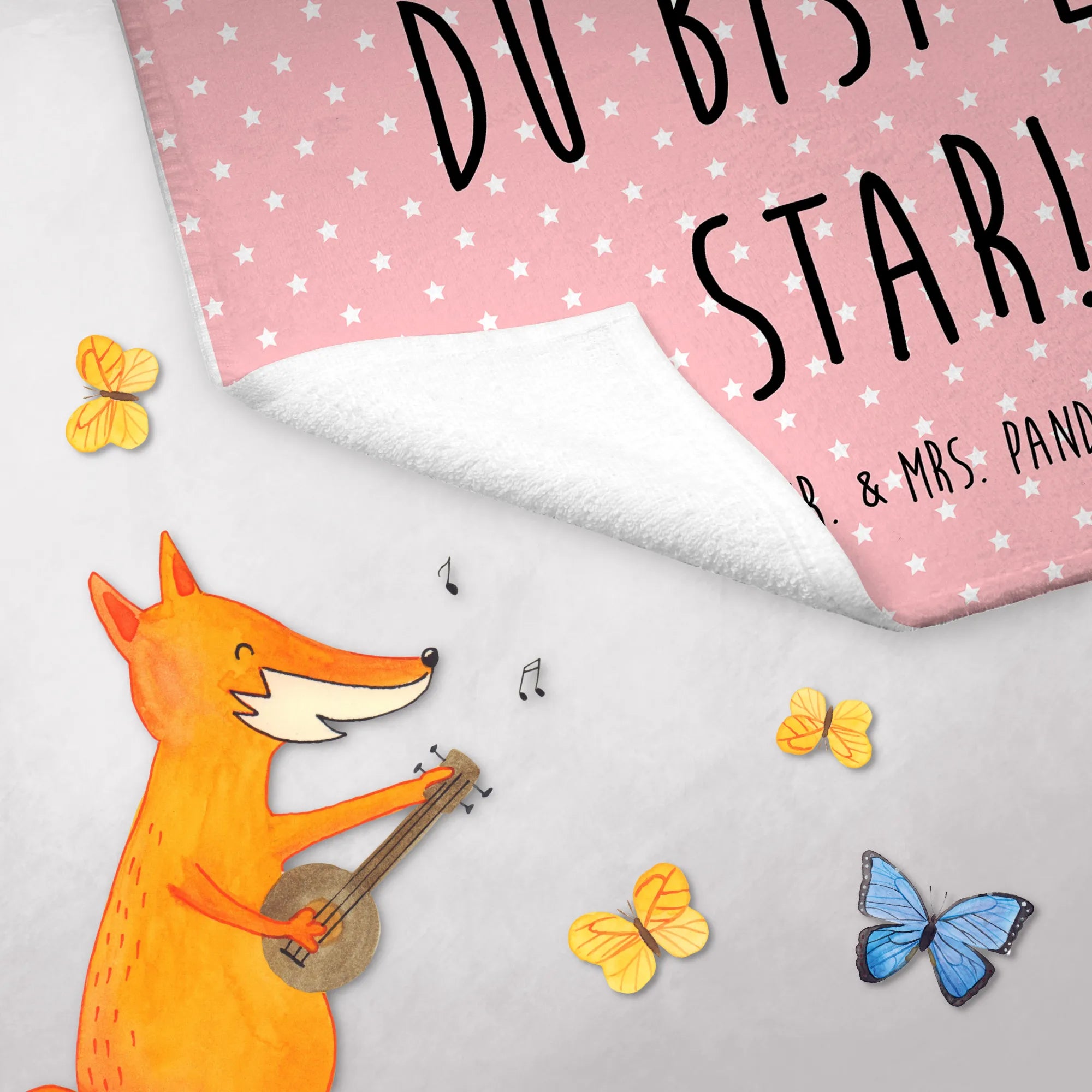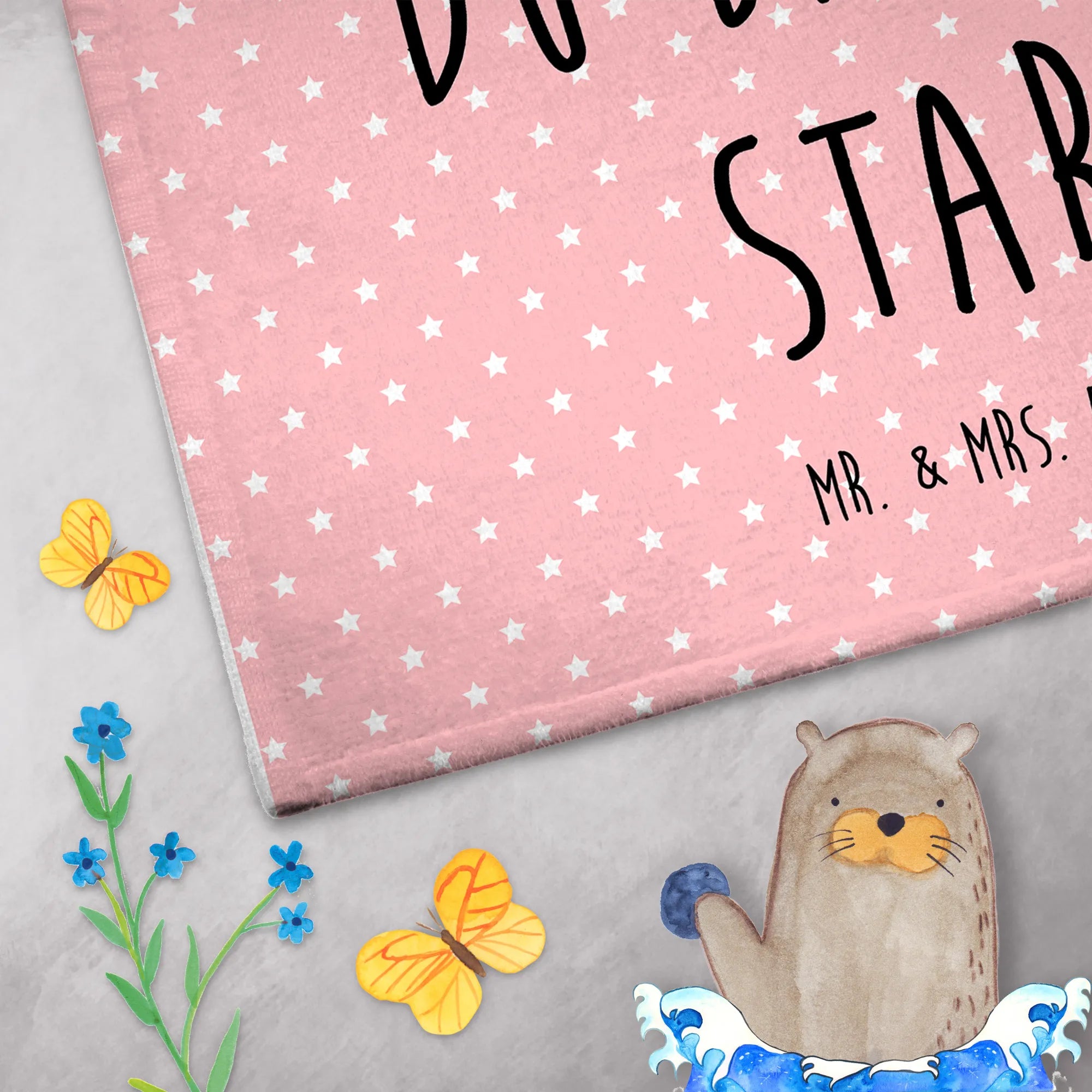Egal ob für den Freizeitspaß im Schwimmbad, für die Reise oder für dein hübsches Gästebad – dieses Handtuch begleitet dich überall hin und zieht die Blicke auf sich. Besonders schön ist der Motto-Spruch "Du bist ein Star!", der toll zu dem Motiv passt und jeden in Feierlaune bringt.