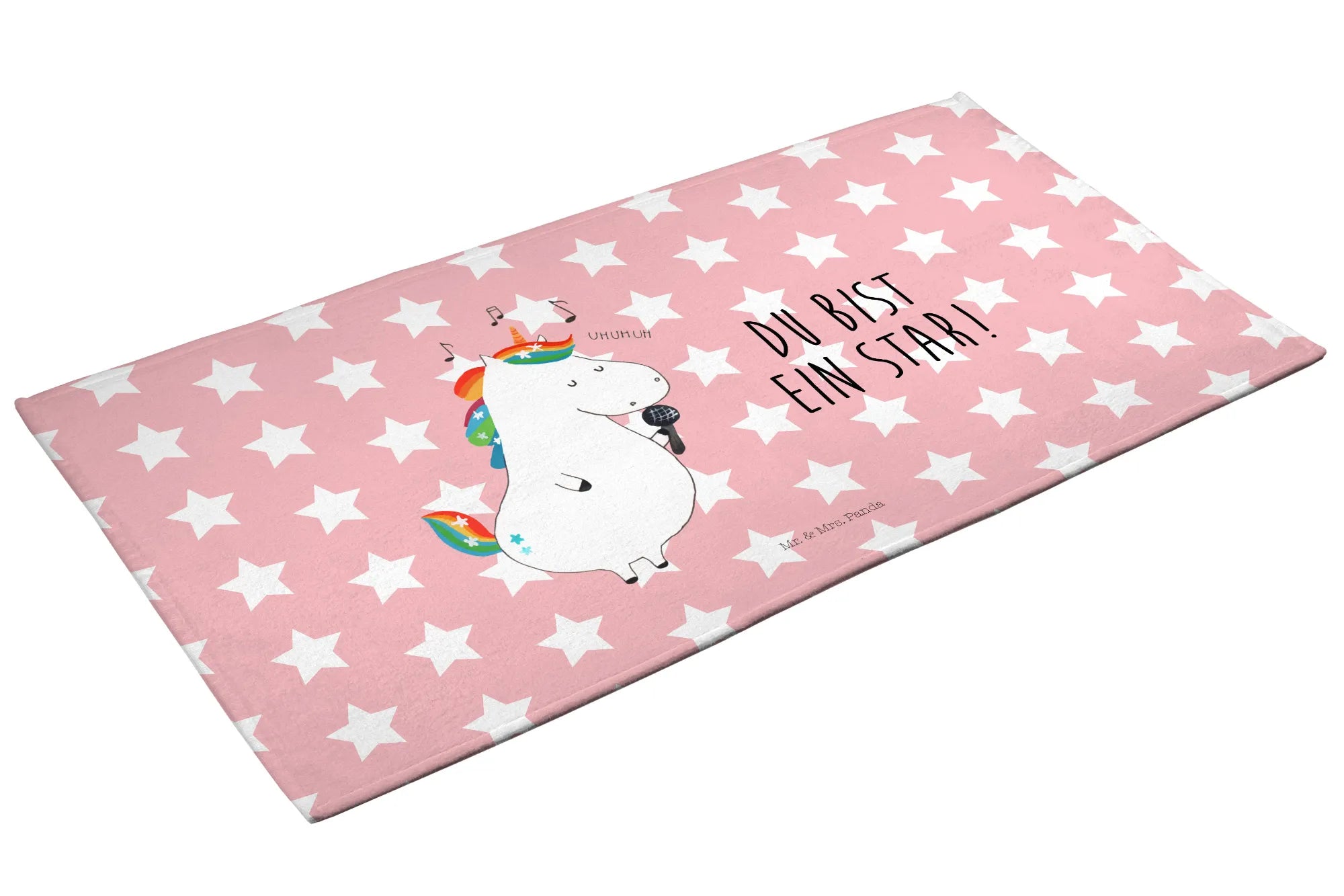 Das 50 x 100 cm Handtuch mit dem zauberhaften Einhorn Sänger Motiv von Mr. & Mrs. Panda ist das perfekte Geschenk für alle kleinen und großen Einhornfans! Ob zum Geburtstag, zur nächsten Feier oder einfach als Überraschung für deine beste Freundin – dieses Handtuch bringt nicht nur Freude, sondern auch Farbe und Glitzer in jedes Badezimmer.