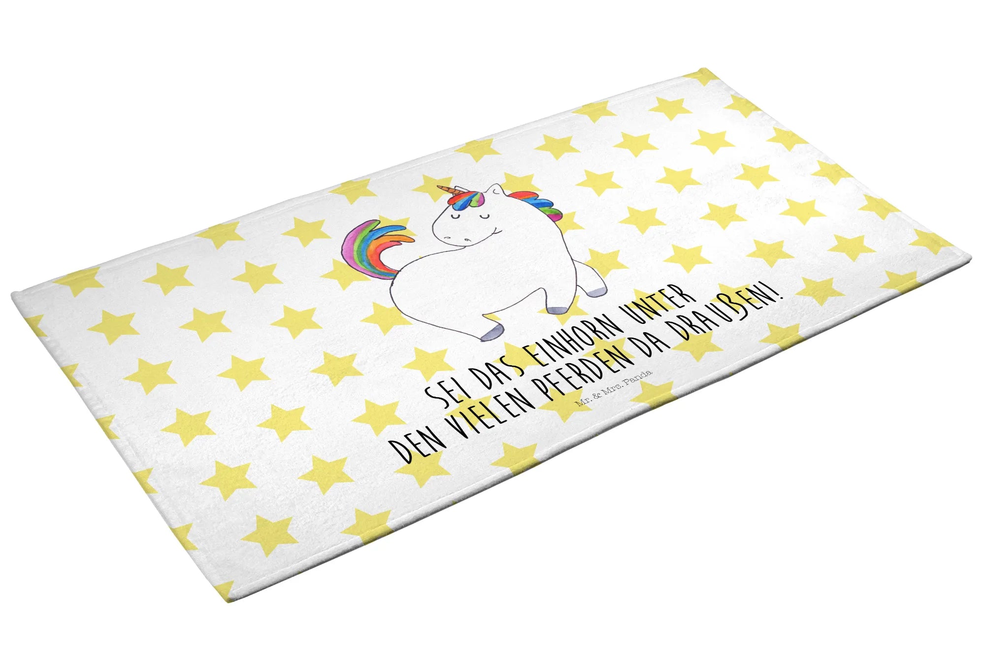 Das süße Einhorn Handtuch von Mr. & Mrs. Panda ist nicht nur ein praktisches Badeaccessoire, sondern auch ein wunderbares Geschenk für alle, die Einhörner lieben! Mit den Maßen 50 x 100 cm ist es perfekt für kleine und große Abenteuer in Bad oder Schwimmbad.