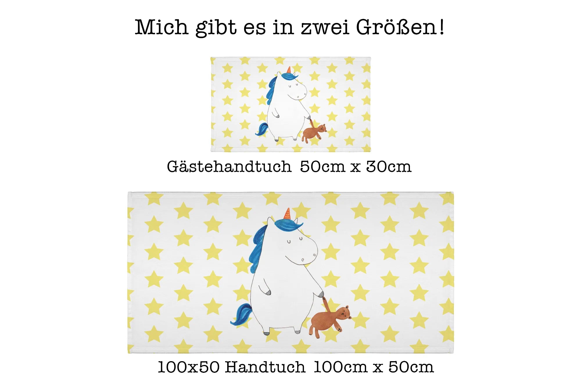 Das wunderschöne Gästehandtuch mit dem süßen Einhorn Teddy aus der Einhorn-Kollektion von Mr. & Mrs. Panda ist mehr als nur ein Handtuch – es ist ein kleines Stück Magie für dein Zuhause! Dieses bezaubernde Handtuch wird mit viel Liebe und einem handgezeichneten Motiv von Mrs. Panda hergestellt. Der kleine Einhorn Teddy, der verschlafen da steht und einen Teddybären in der Hand hält, bringt sofort Freude in jedes Badezimmer.