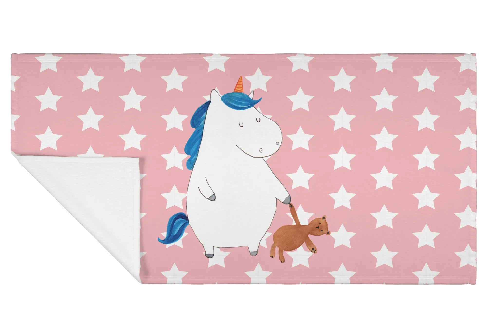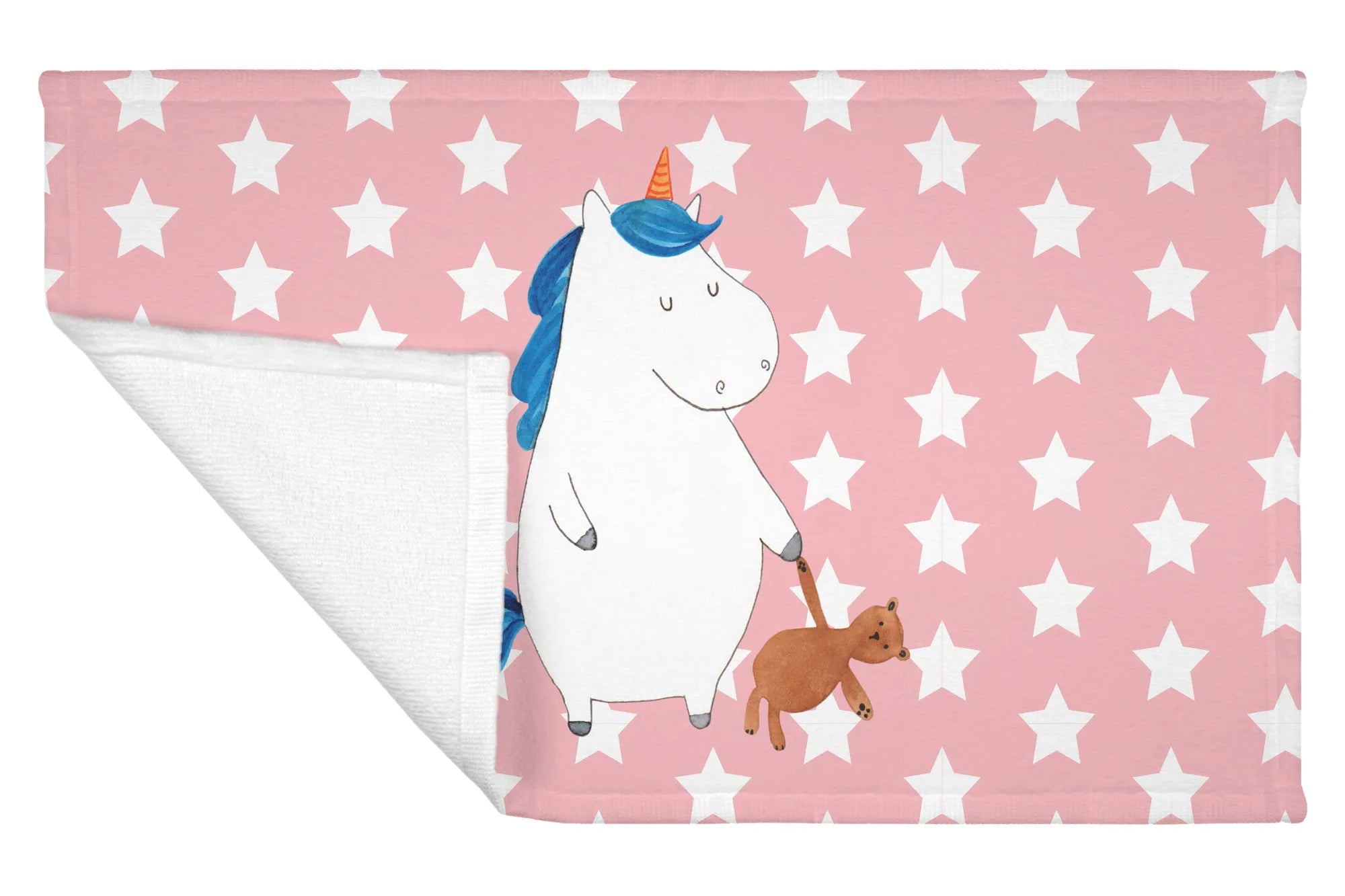 Das 50 x 100 Handtuch mit dem süßen Einhorn Teddy aus der Einhorn - Kollektion von Mr. & Mrs. Panda ist der perfekte Begleiter für kleine Einhorn-Fans und alle, die das Besondere lieben. Mit seinem charmanten Design bringt es Freude in jedes Badezimmer.