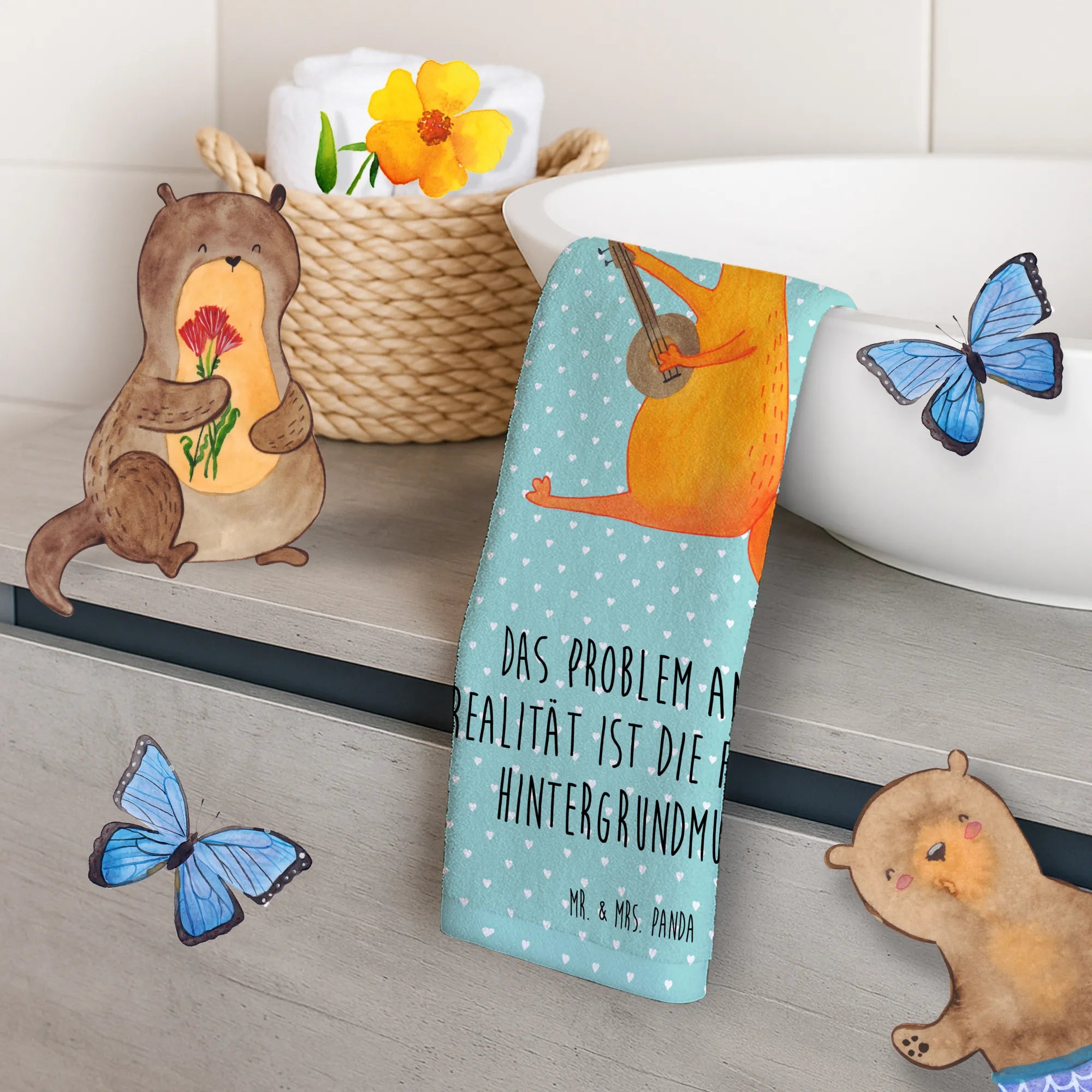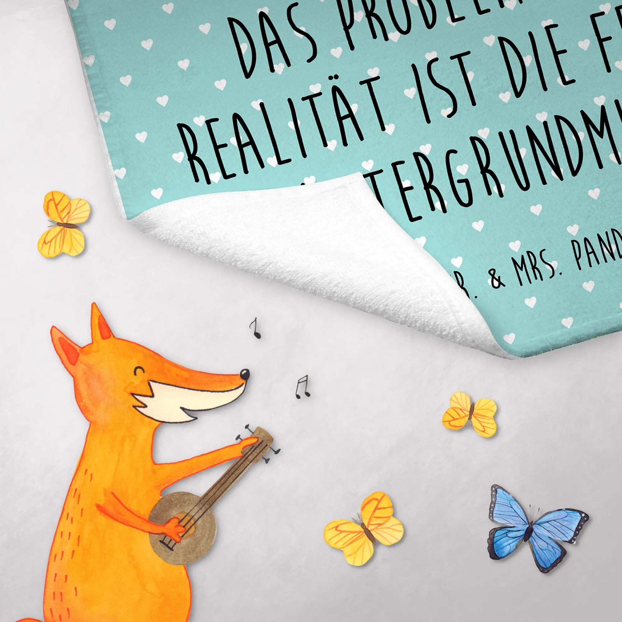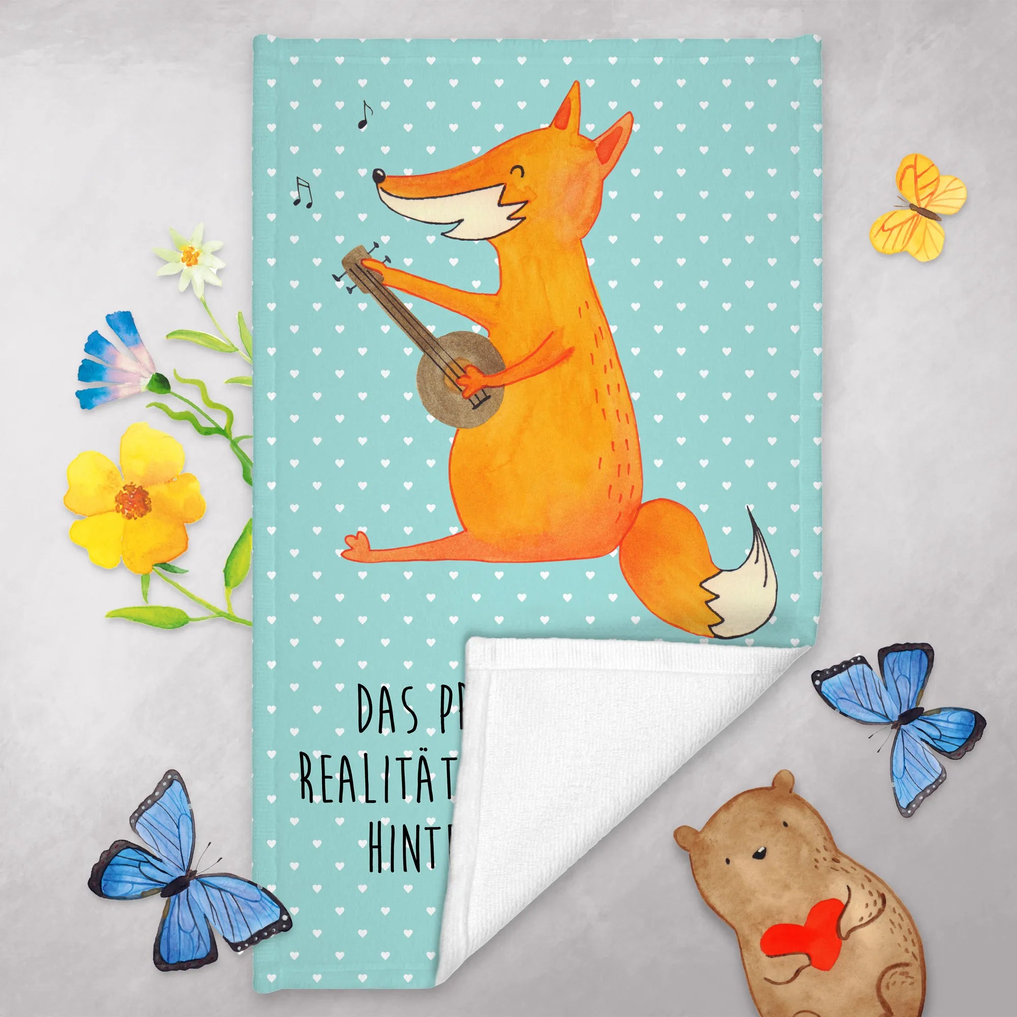 Das Gästehandtuch mit dem süßen Fuchs-Motiv und der Gitarre von Mr. & Mrs. Panda ist das perfekte Geschenk für alle Musikliebhaber und Tierfreunde! 🎶 Dieses handgemachte Handtuch ist nicht nur nützlich, sondern auch ein echtes Highlight in jedem Badezimmer. Die farbenfrohe Gestaltung bringt Freude und einen Hauch von Kreativität in dein Zuhause. Besonders der Spruch "Das Problem an der Realität ist die fehlende Hintergrundmusik." macht das Handtuch zu etwas ganz Besonderem, ideal für Sänger, Musikerinnen und alle, die das Leben lieben. 🌟