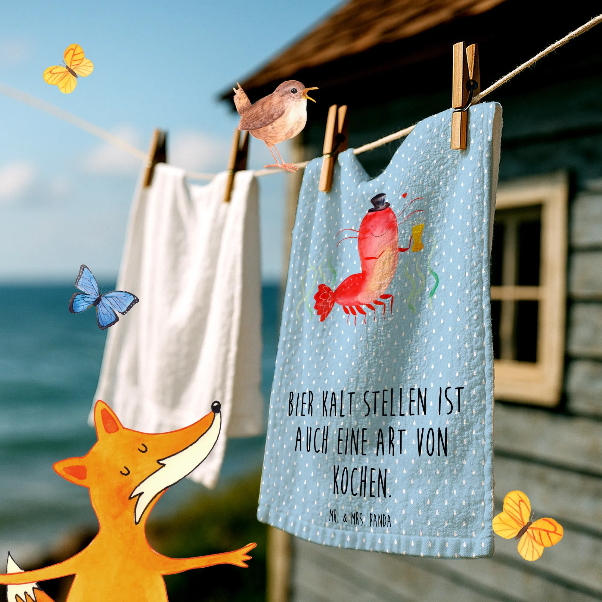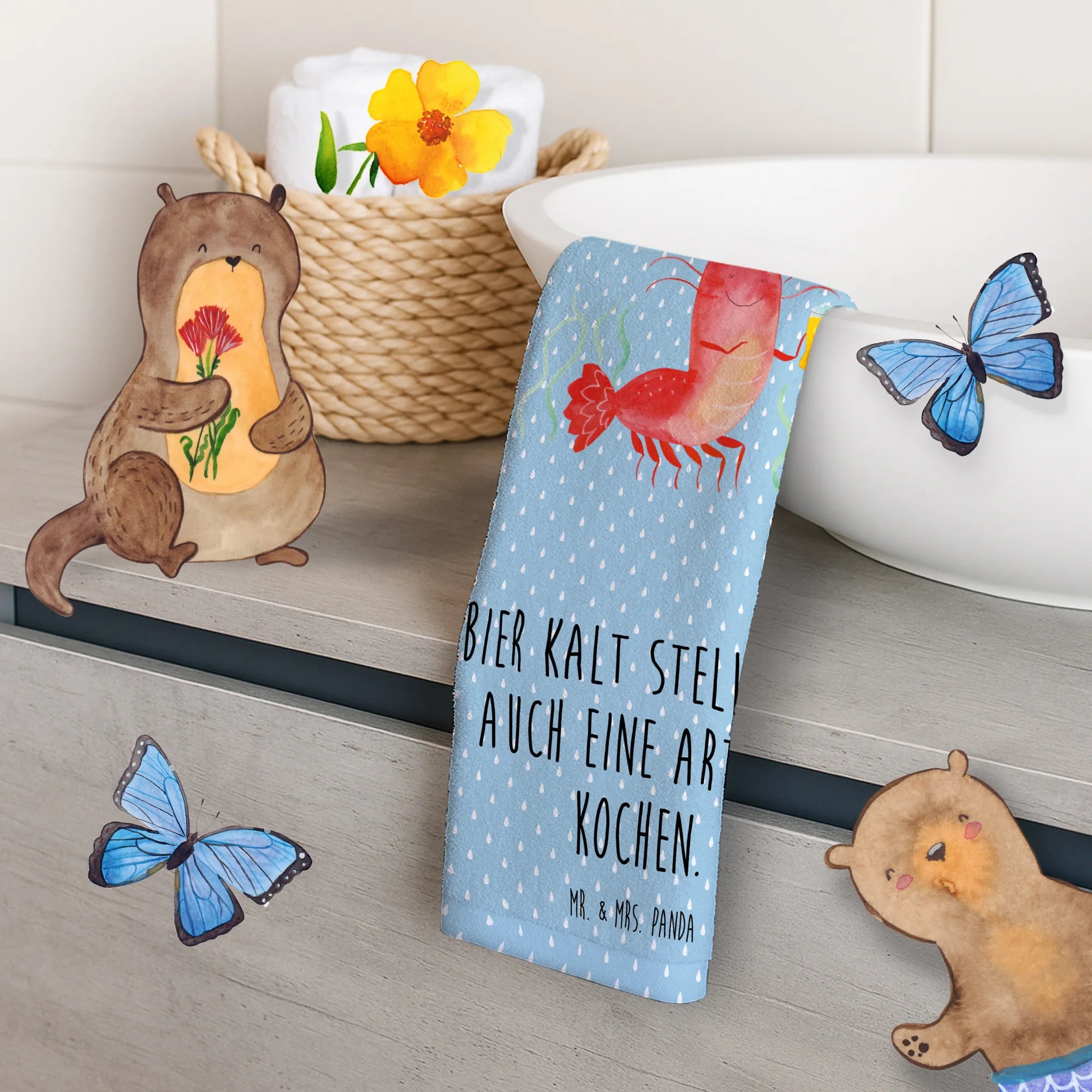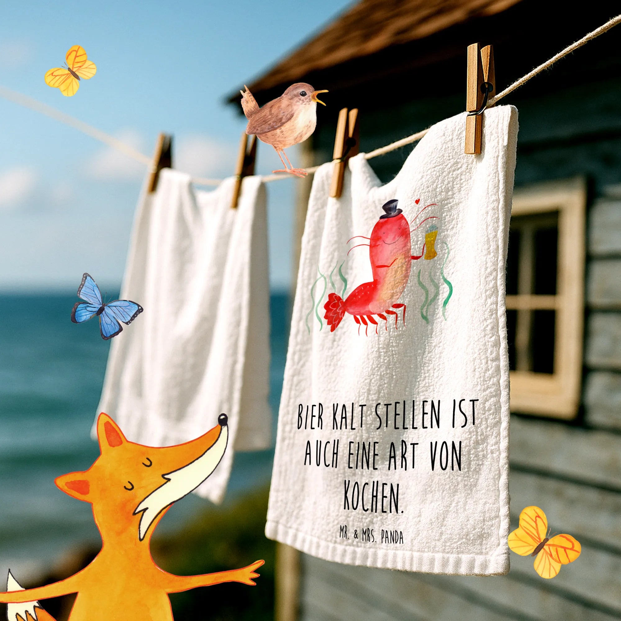 Das Gästehandtuch 'Hummer mit Weizen' von Mr. & Mrs. Panda ist das perfekte Geschenk für alle, die das Meer lieben und gerne Zeit in der Küche verbringen. Dieses liebevoll gestaltete Handtuch zeigt einen fröhlichen Hummer, der eine goldene Krone trägt und mit einer Schere ein Glas mit einem schäumenden Bier hält. Umgeben von grünem Seegras und einem kleinen roten Herz strahlt der Hummer gute Laune aus und macht jedes Badezimmer zu einem Ort der Freude.