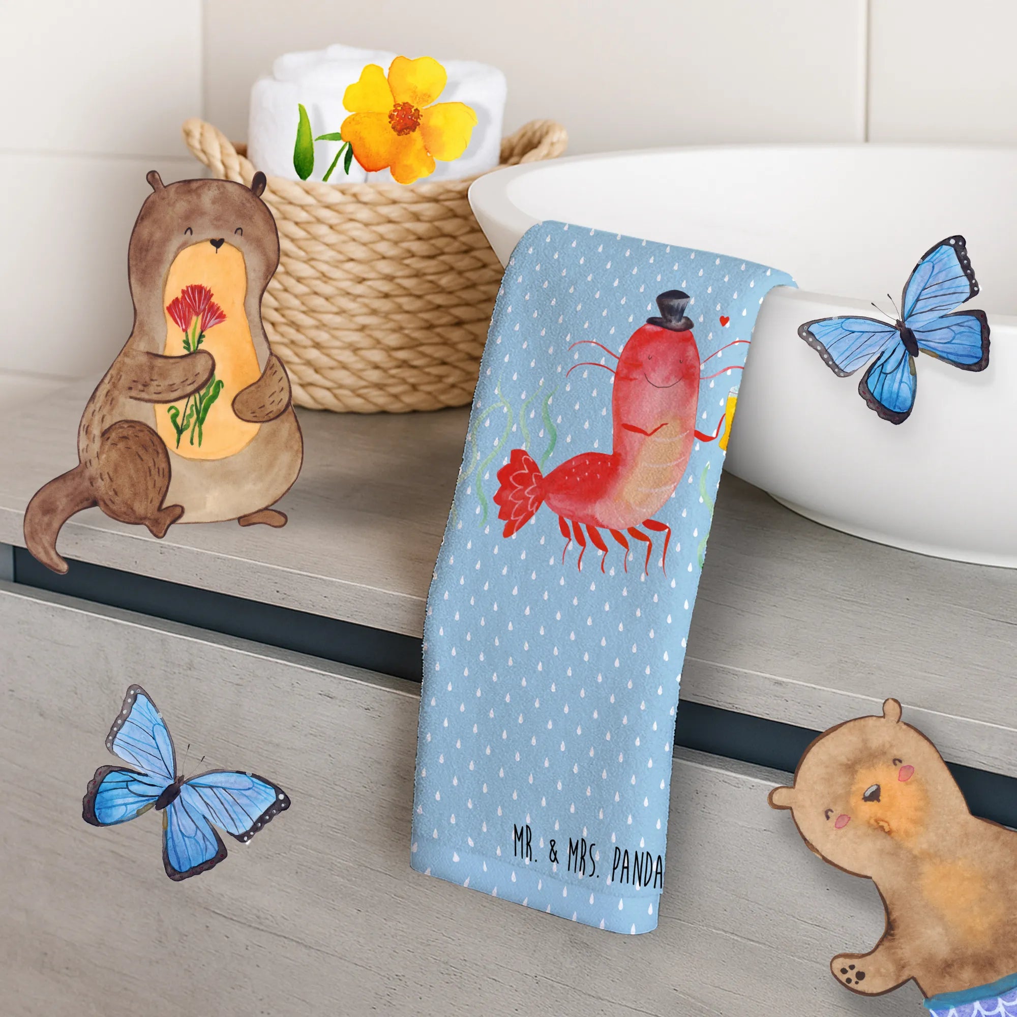 Das Gästetuch "Hummer mit Weizen" von Mr. & Mrs. Panda ist das perfekte Geschenk für alle, die das Meer lieben und eine Vorliebe für gute Drinks haben. Mit seinem fröhlichen Design, das einen bezaubernden Hummer zeigt, der eine goldene Krone trägt und ein Glas mit einem schäumenden, gelben Getränk in seiner Schere hält, bringt dieses Handtuch Lebensfreude in jedes Badezimmer.